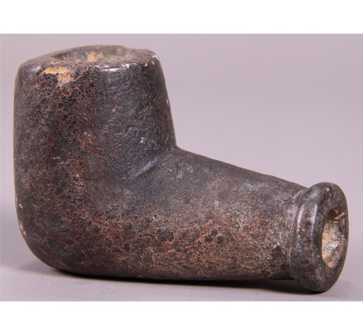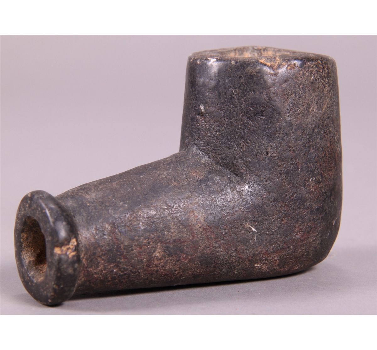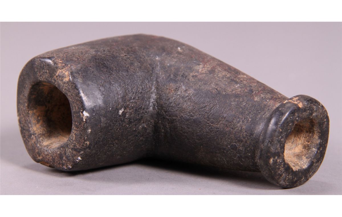 Native American Indian Artifact, Elbow Pipe, hand carved granite. (Large Base) Black [Height/Length (in)= 4.5, Width (in)=2, Depth (in)=3, Weight (lbs)=1.6] With C.O.A. signed by Chief Joe Dan Osceola & Seminole Tribe. Go to: www.pangaea-auctions.com for more information about this collection.