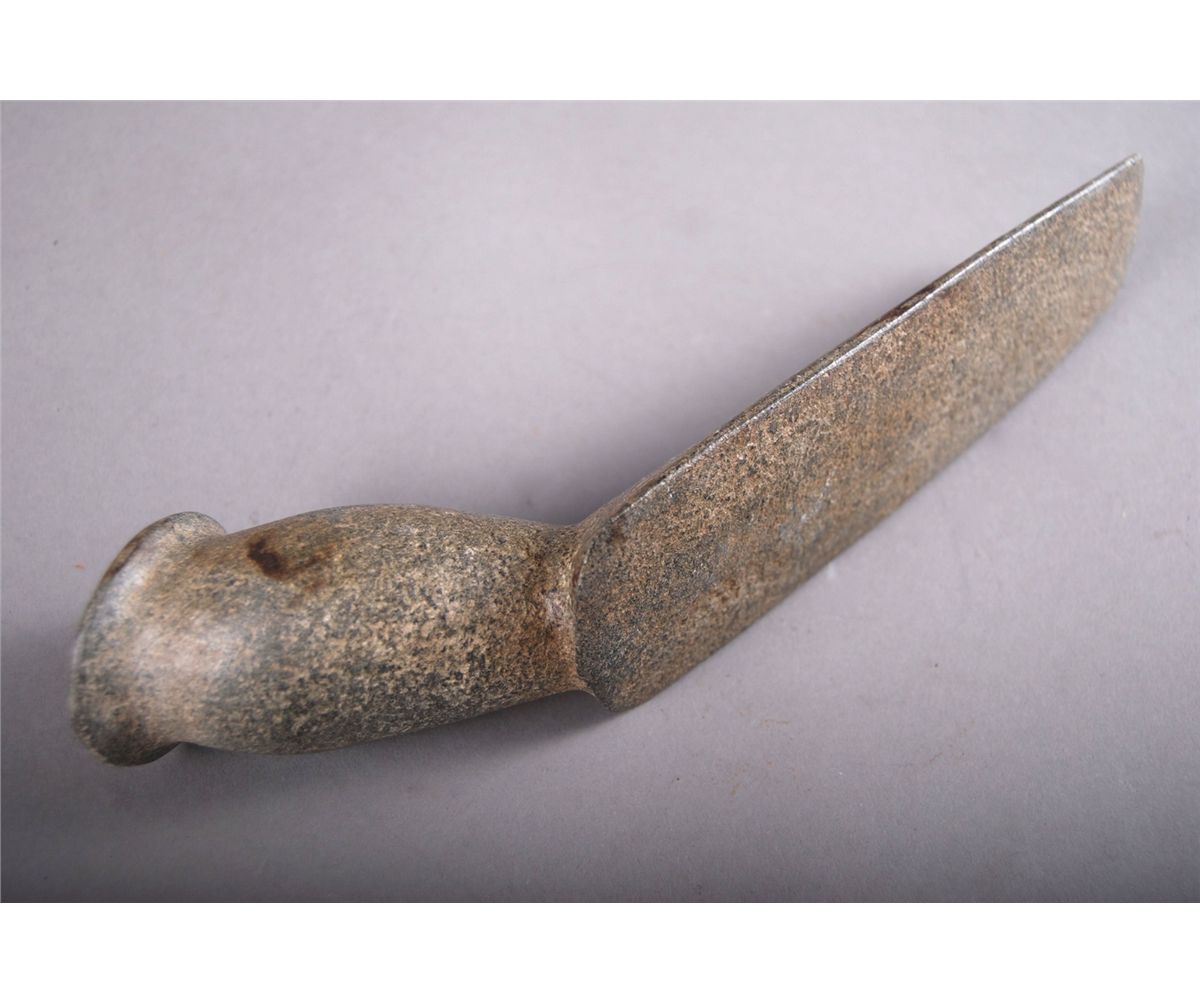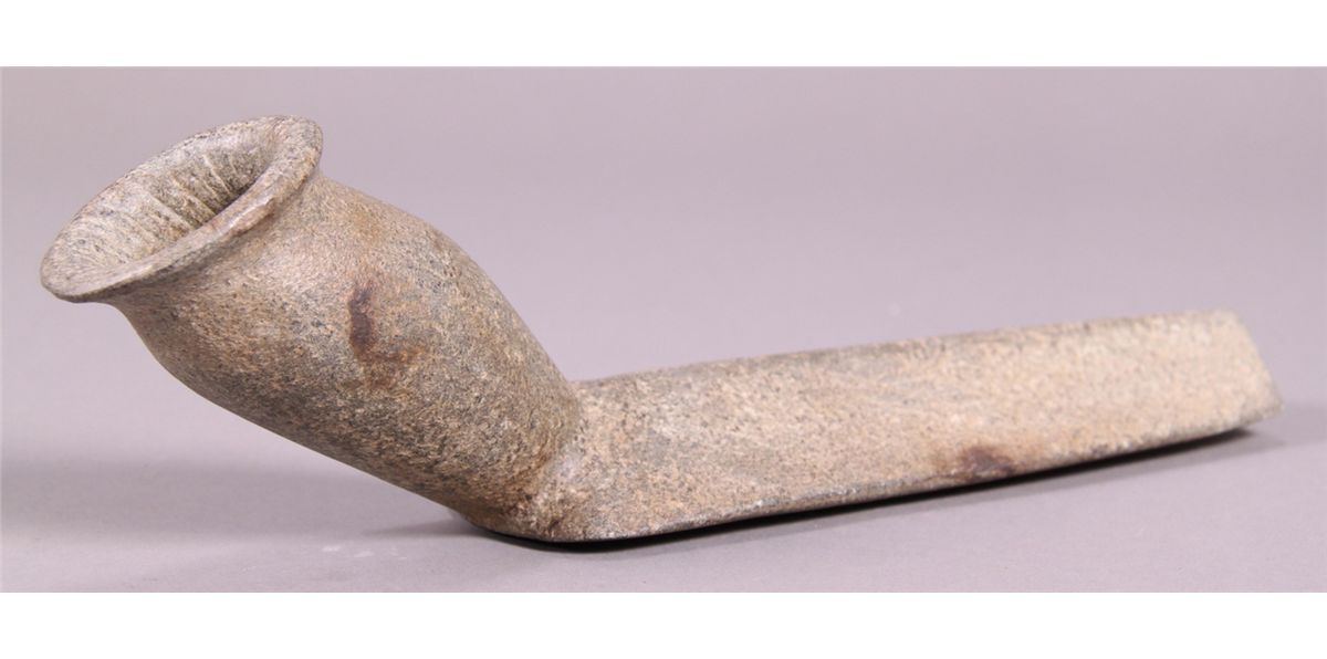 Native American Indian Artifact, Hand Carved Stone Platform Pipe, excellent condition. Rare. [Height/Length (in)= 9.5, Width (in)=2.25, Depth (in)=3, Weight (lbs)=1.3] With C.O.A. signed by Chief Joe Dan Osceola & Seminole Tribe. Go to: www.pangaea-auctions.com for more information about this collection.