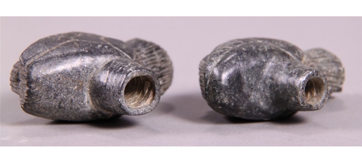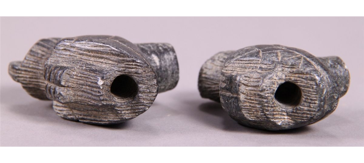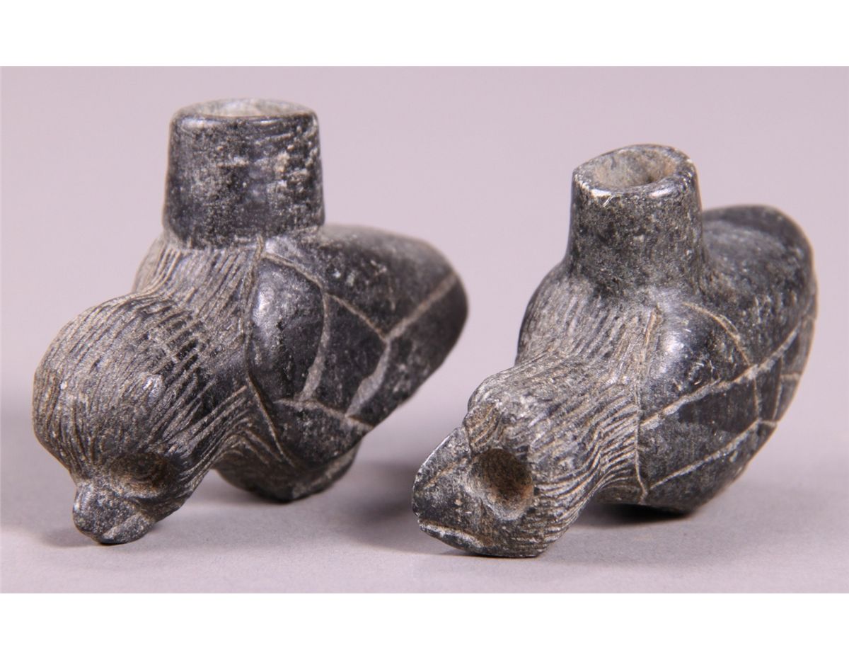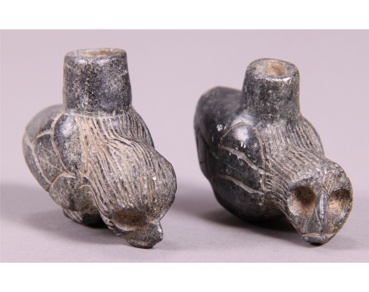 Native American Indian Artifact, Pair of Bird Stone Effigy Pipes [Height/Length (in)= 2.5, Width (in)=2, Depth (in)=1, Weight (lbs)=0.5] With C.O.A. signed by Chief Joe Dan Osceola & Seminole Tribe. Go to: www.pangaea-auctions.com for more information about this collection.