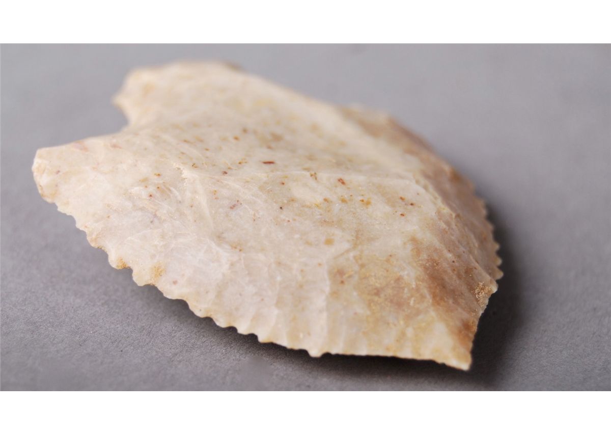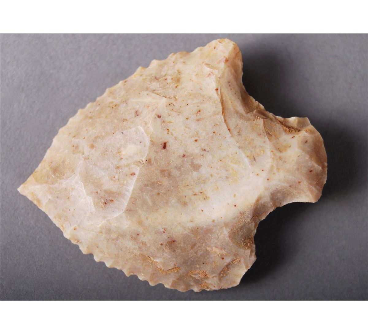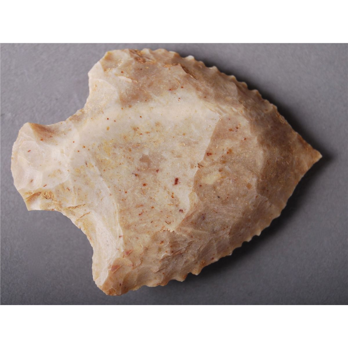Native American Indian Artifact, Stemmed Point Arrowhead, Brown [Height/Length (in)= 2.25, Width (in)=1.75, Depth (in)=0.5, Weight (lbs)=0.25] With C.O.A. signed by Chief Joe Dan Osceola & Seminole Tribe. Go to: www.pangaea-auctions.com for more information about this collection.