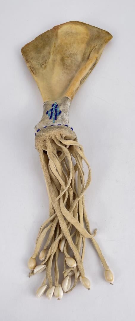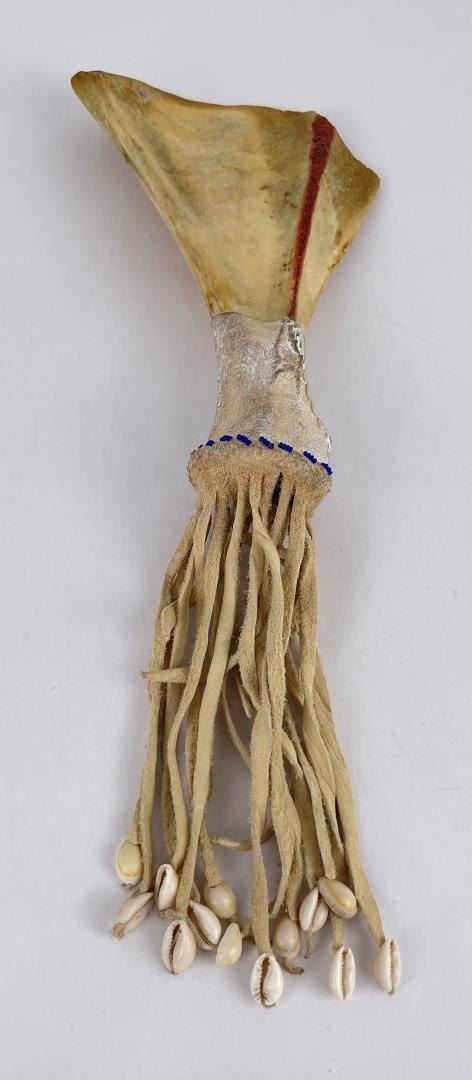Very nice piece. First half of the 20th century. 16" long. Cowrie shell drops.