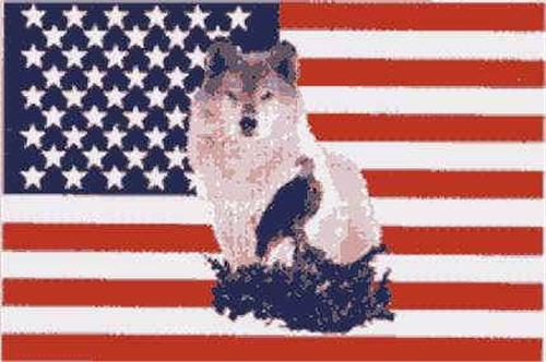 US Flag background with a Wolf and Eagle. 3' X 5' with reinforced edge
