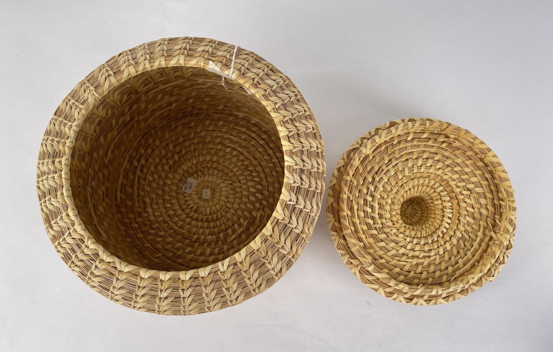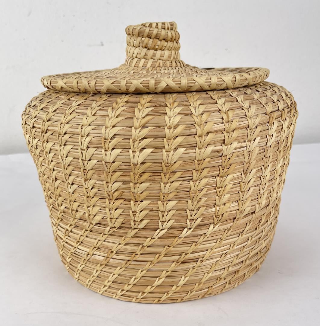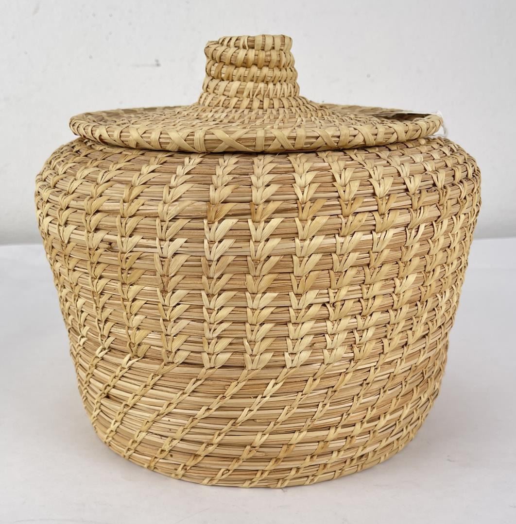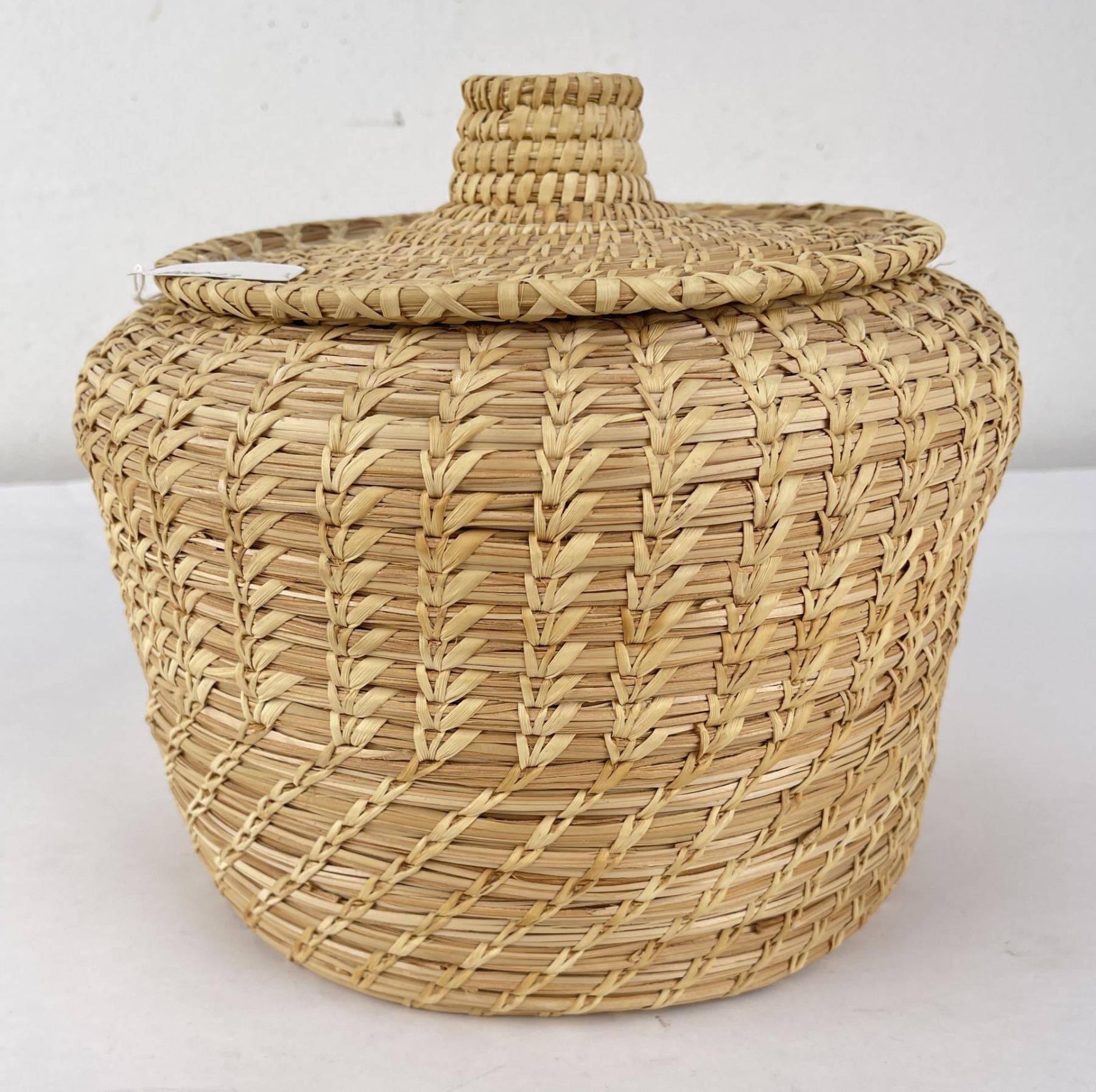 Nice lidded basket. 9 1/2" tall, 10" diameter. Allard Auction Collection Inv: ABA