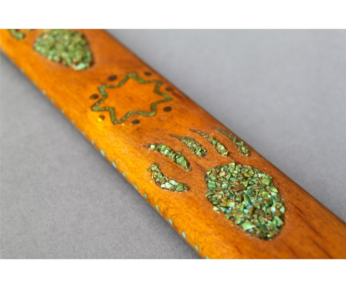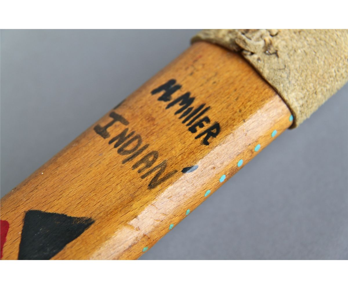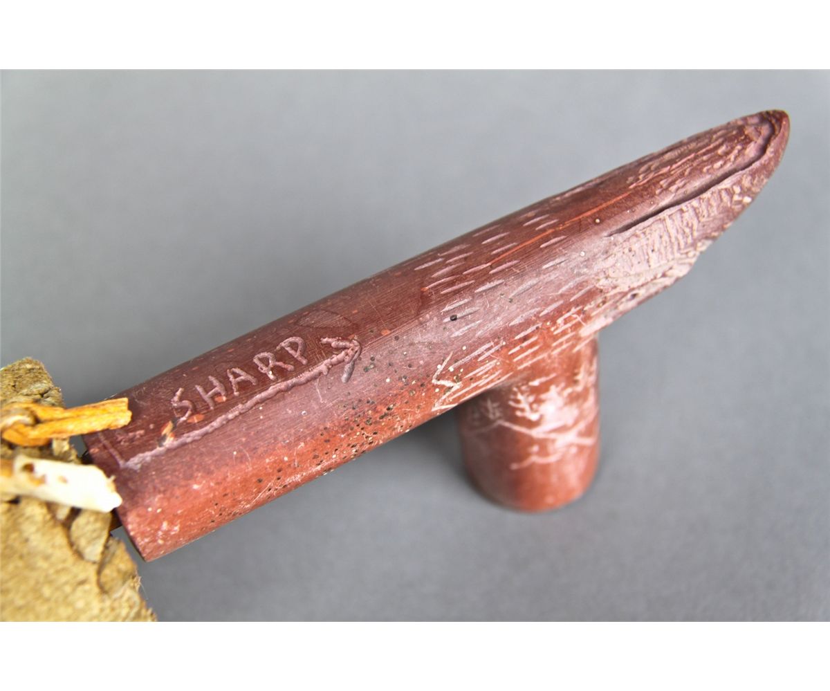 Native American Indian Peace Pipe with Minnesota Pipestone, leather and Turquoise chip inlay. [Height/Length (in)= 23, Width (in)=2, Depth (in)=1, Weight (lbs)=1] With C.O.A. signed by Chief Joe Dan Osceola & Seminole Tribe. Go to: www.pangaea-auctions.com for more information about this collection.
