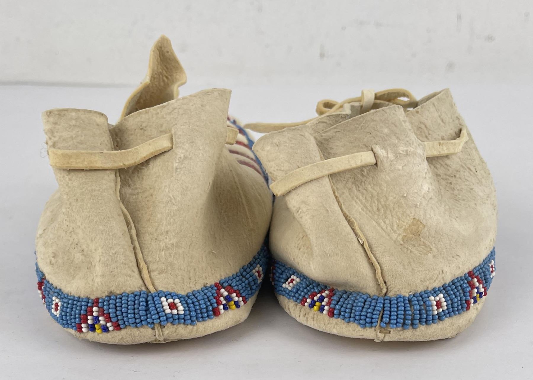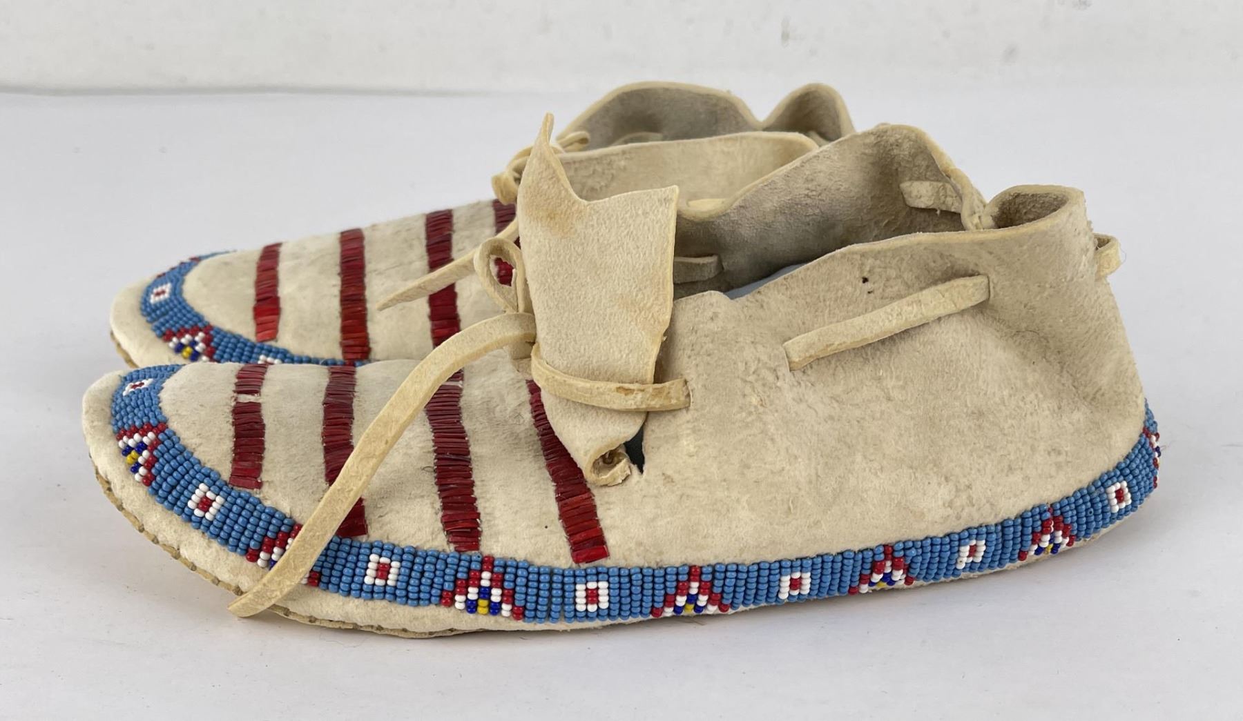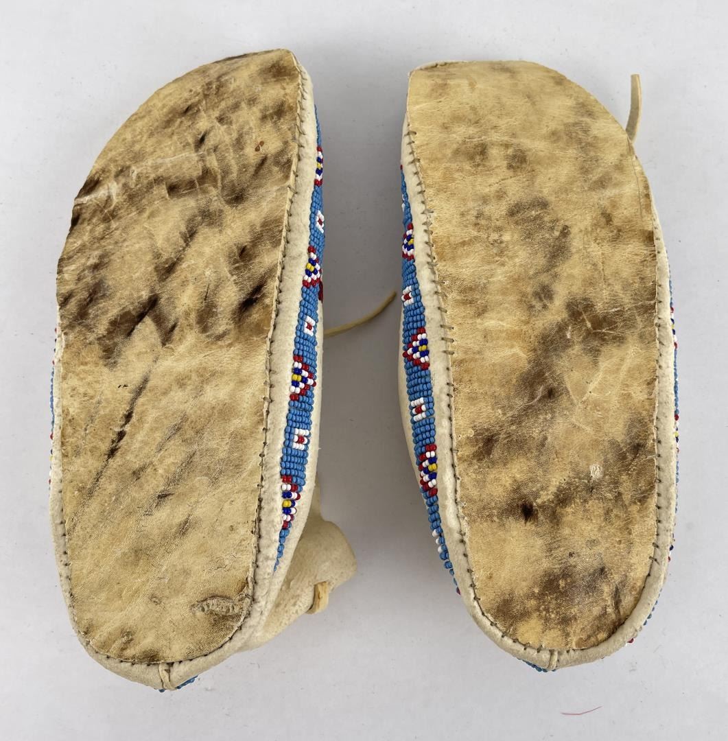 Nice pair of moccasins. Second half of the 20th Century. 9.5" long. Made by Mrs. Shields.