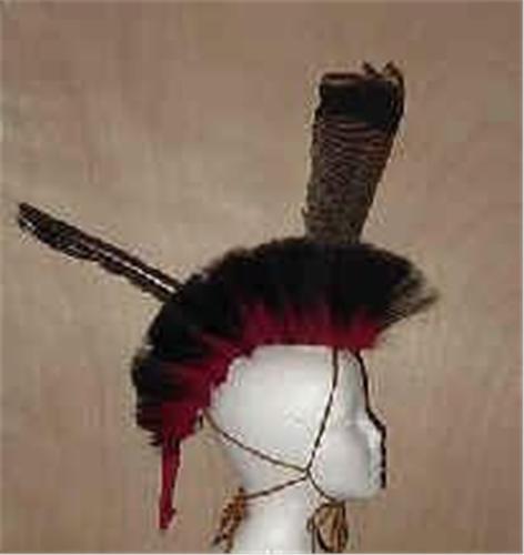 Horsehair Roach with Red deer tail and 2 turkey tail feathers.