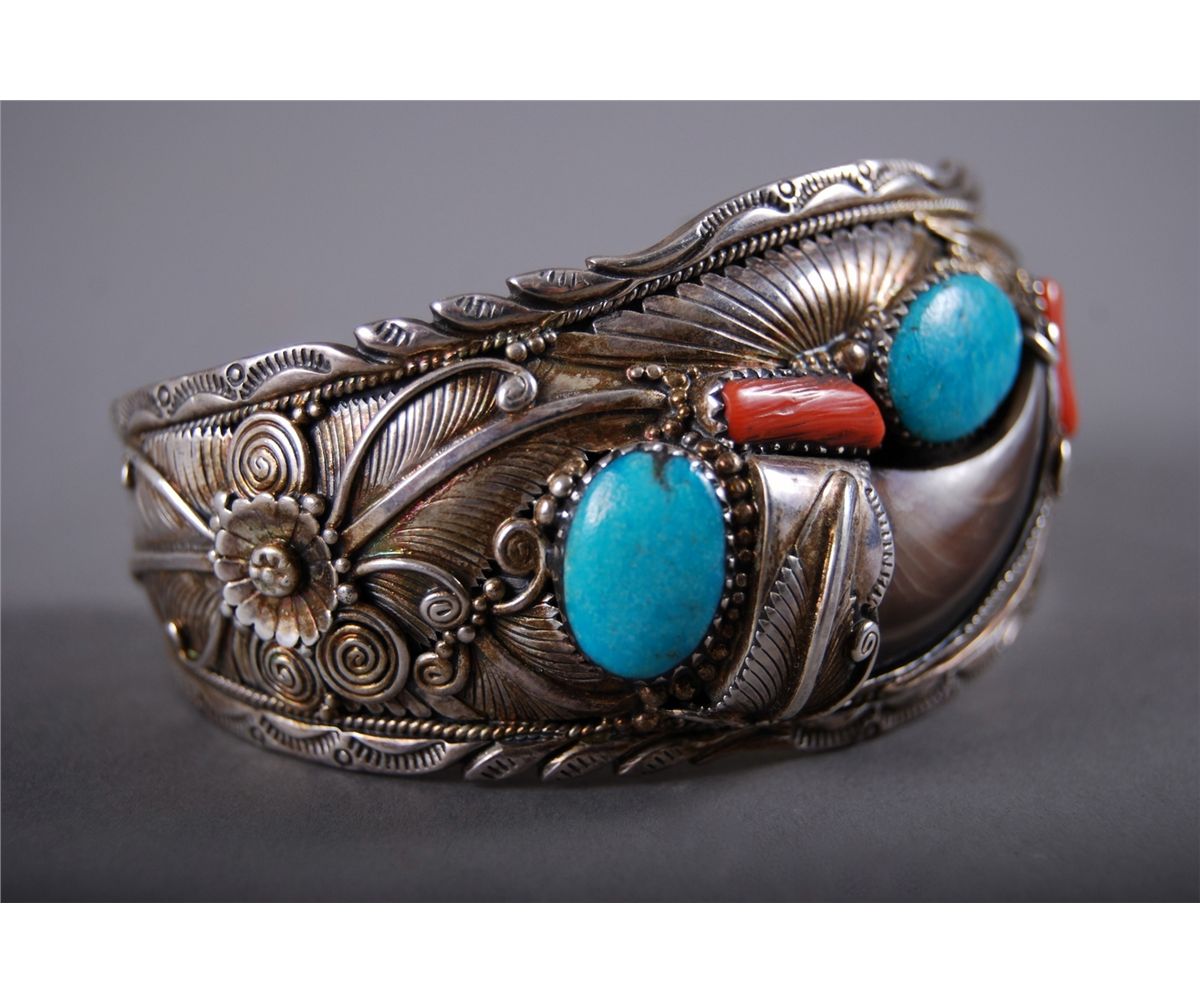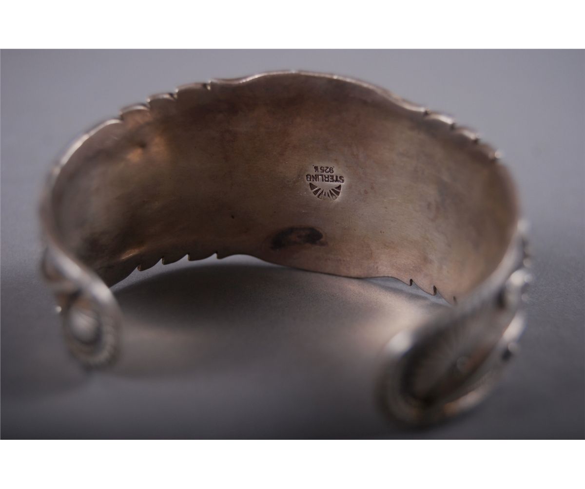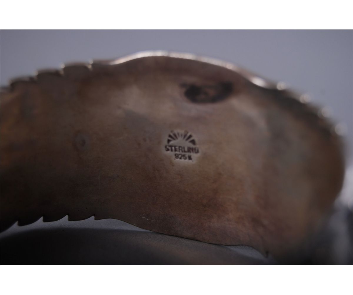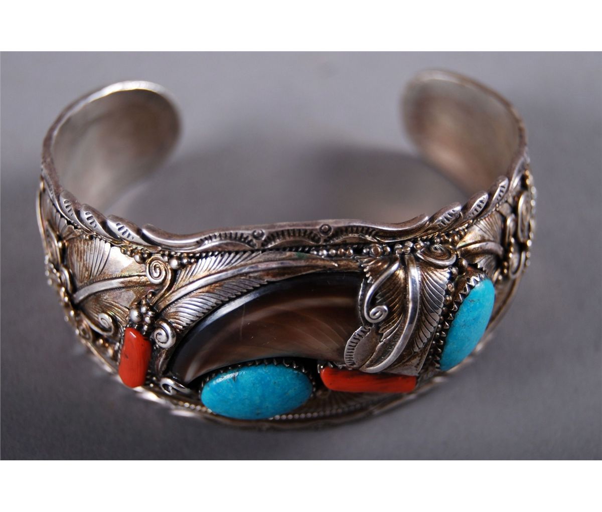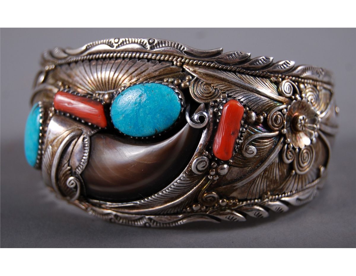 Native American Indian Sterling Silver Bangle with Bear Claw [Height/Length (in)= 3, Width (in)=2.25, Depth (in)=1.5, Weight (lbs)=1.7] With C.O.A. signed by Chief Joe Dan Osceola & Seminole Tribe. Go to: www.pangaea-auctions.com for more information about this collection.