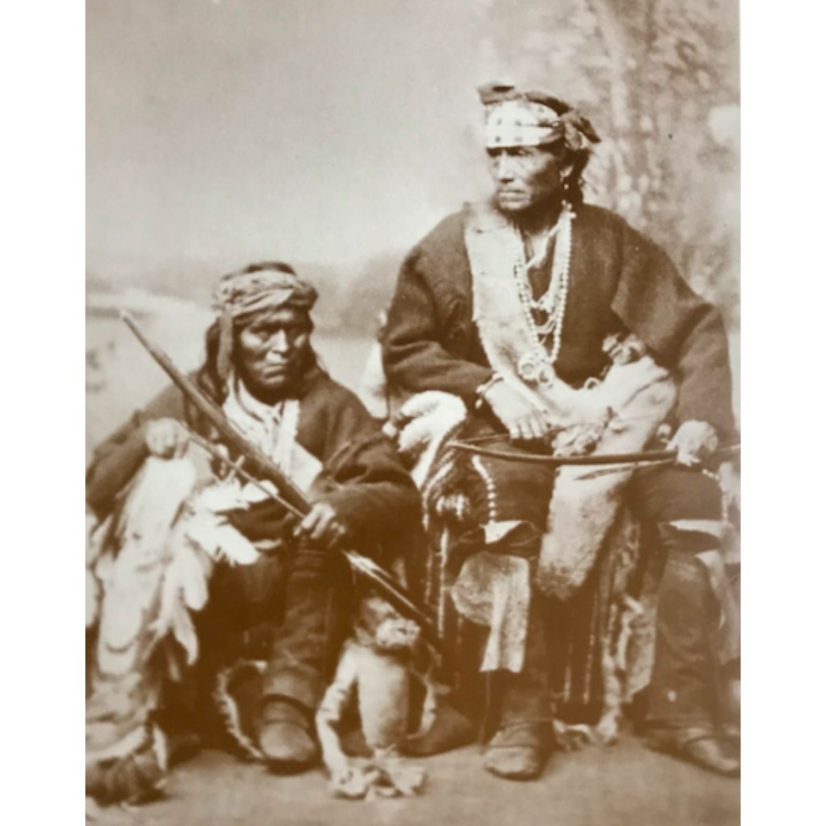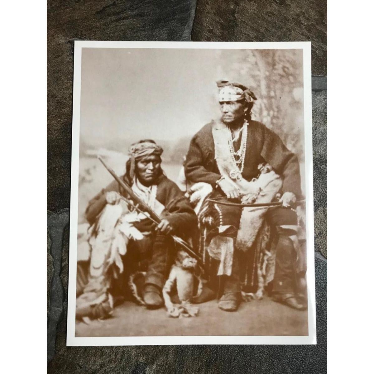 Native American History, hunting theme, Indians with bows & arrows & skins, sepia-tone photo print on heavy cardstock. Created in the early 1990's for The American Heritage Gallery. 8" X 10".