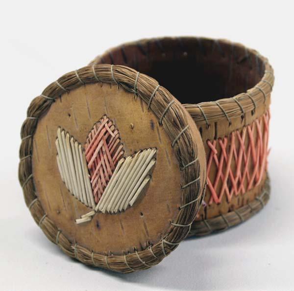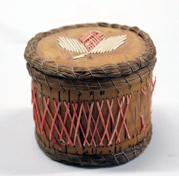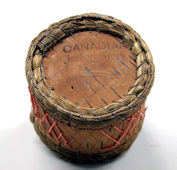 Native American Iroquois Birchbark & Porcupine Quill Box, Canadian Indian Work stamped on bottom, measures approx. 2.75''Diameter and 2 3/8''H. Buyers Pay Actual Shipping and Handling Charges(see terms and conditions for more information)