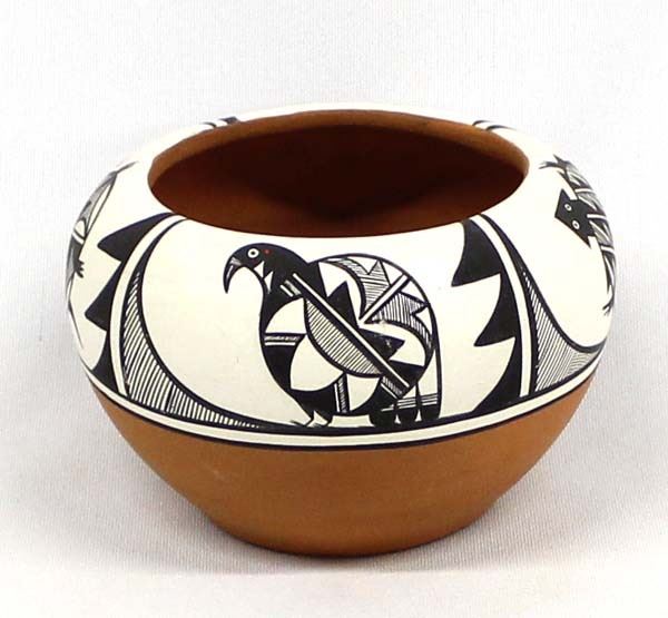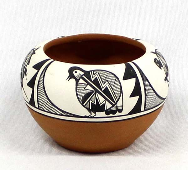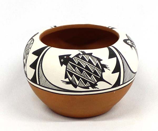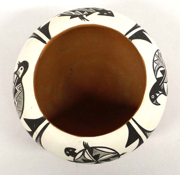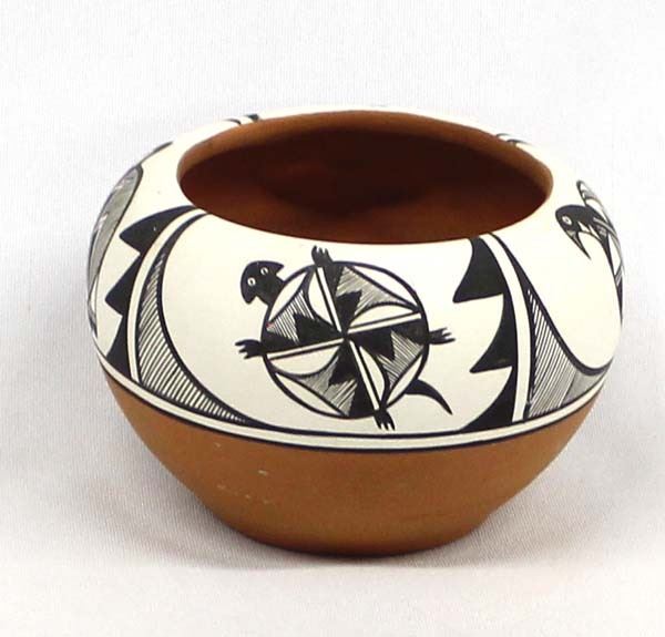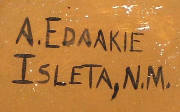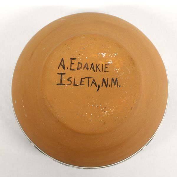 Native American Isleta Pottery Bowl by Anthony Edaakie, measures 4.25'' x 2.75'' and is signed on the bottom