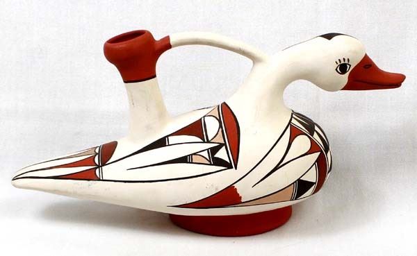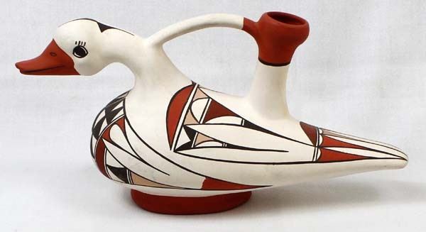 Native American Isleta Ceramic Pottery Goose by Ruby Lucero, measures 6'' x 12'' x 4'' and is signed on the bottom, some scuffing