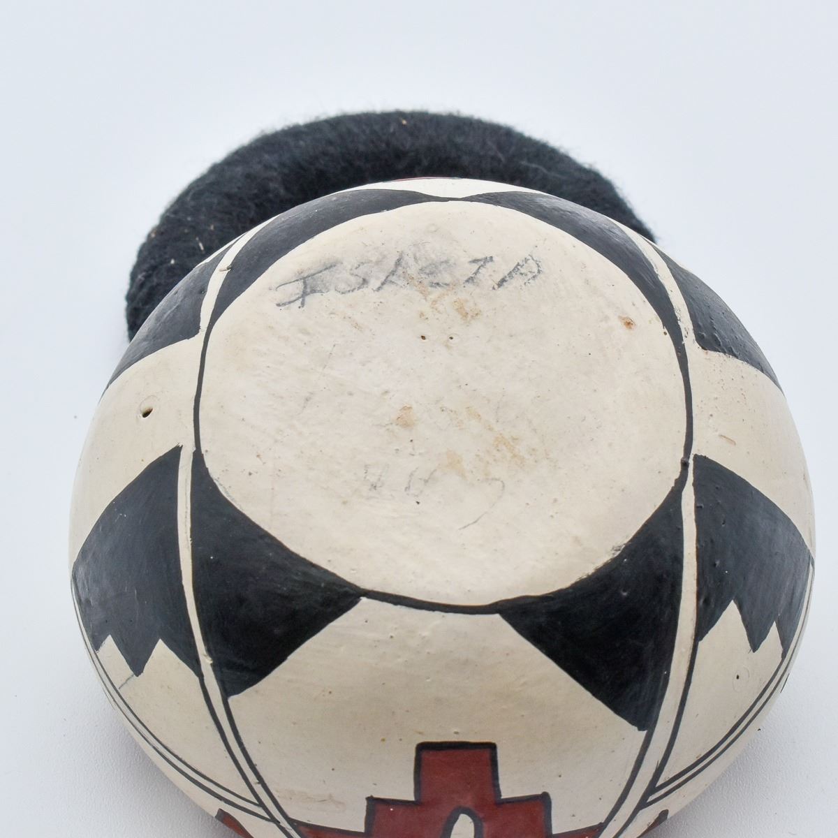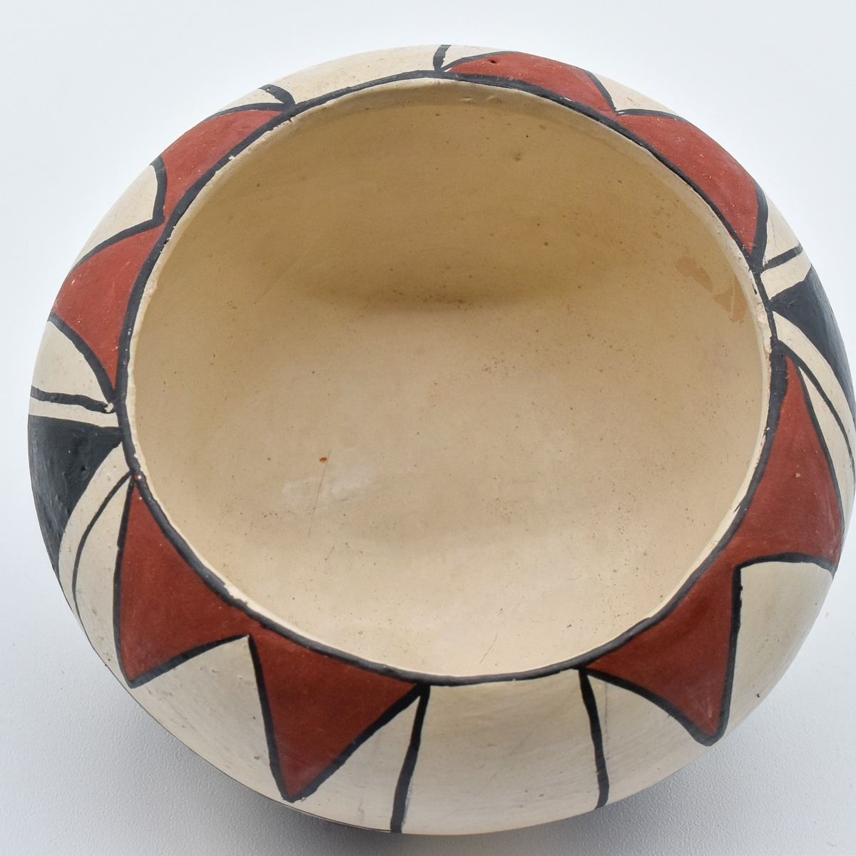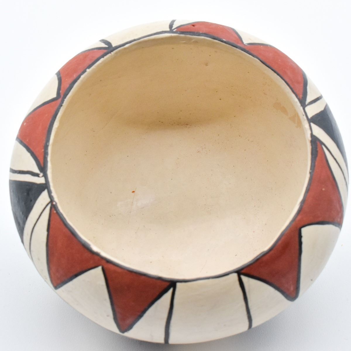 Native American Isleta Pueblo Pottery Bowl. This tri-colored item measures 2'' x 4''