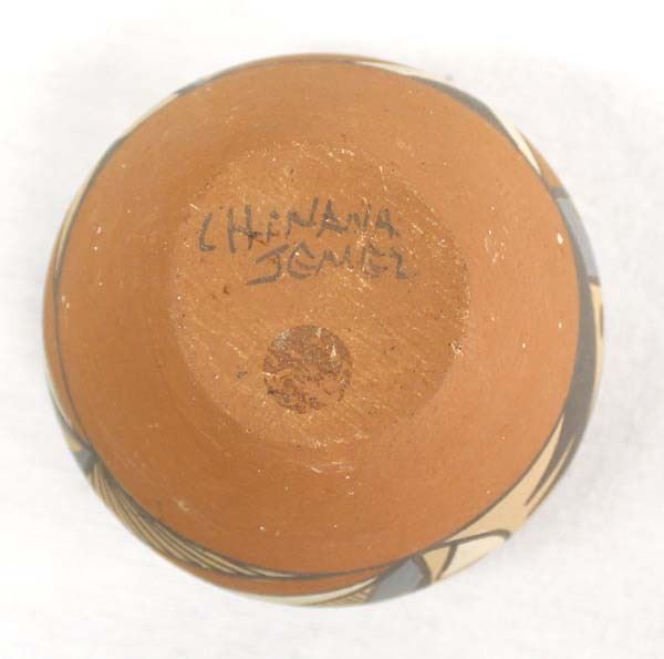 Native American Jemez Pottery Bowl by Chinana, measures 3.5'' x 3.75'' and is signed on the bottom, beautiful colors