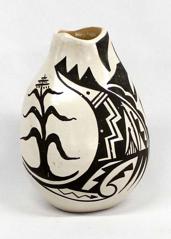 Vintage Native American Jemez Pottery Jar by Cajero, measures 6.5'' x 5'' and is signed on the bottom, some pitting and scratches