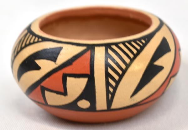 Native American Jemez Pottery Jar by Dorela Tosa, measures 1.75" x 3" and is signed on the bottom