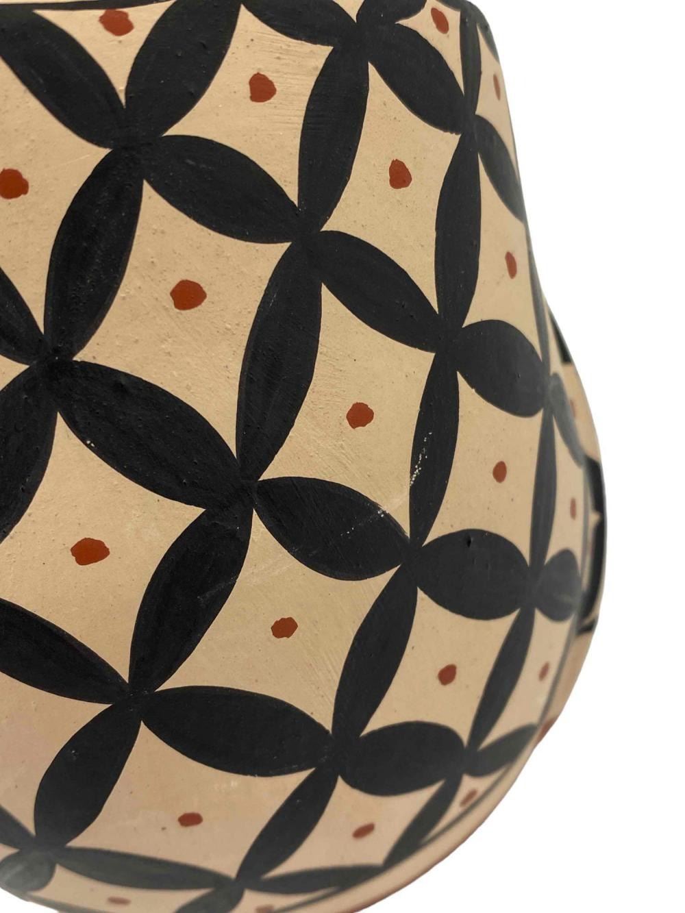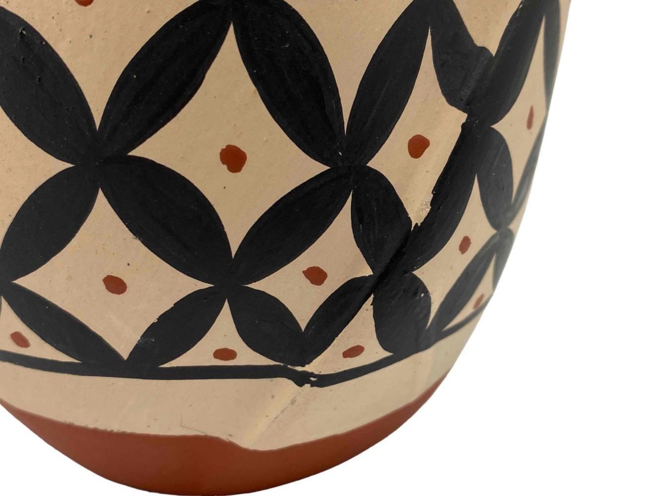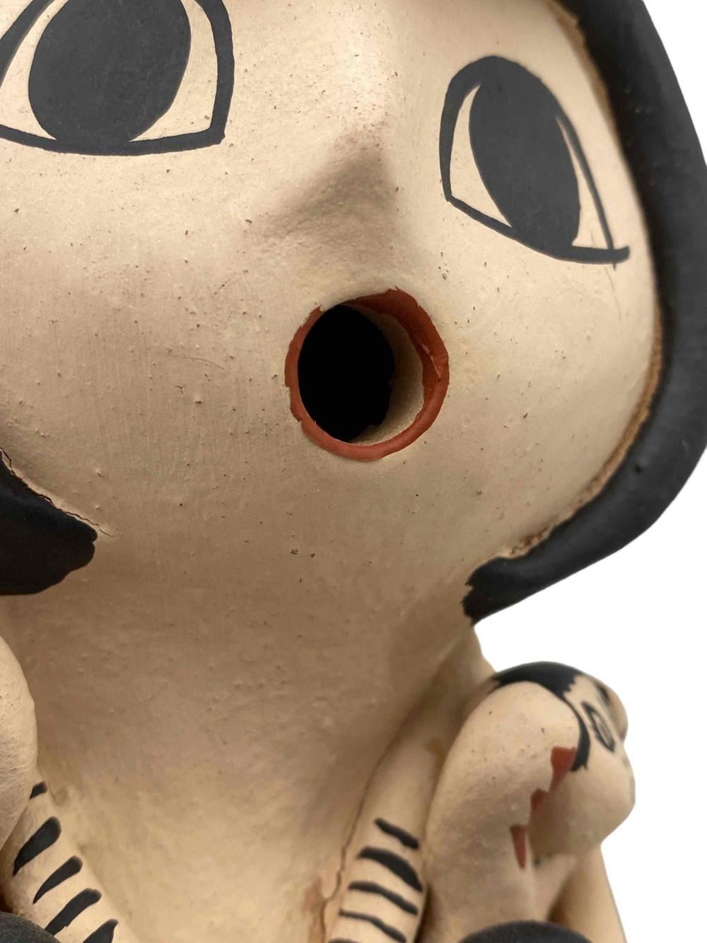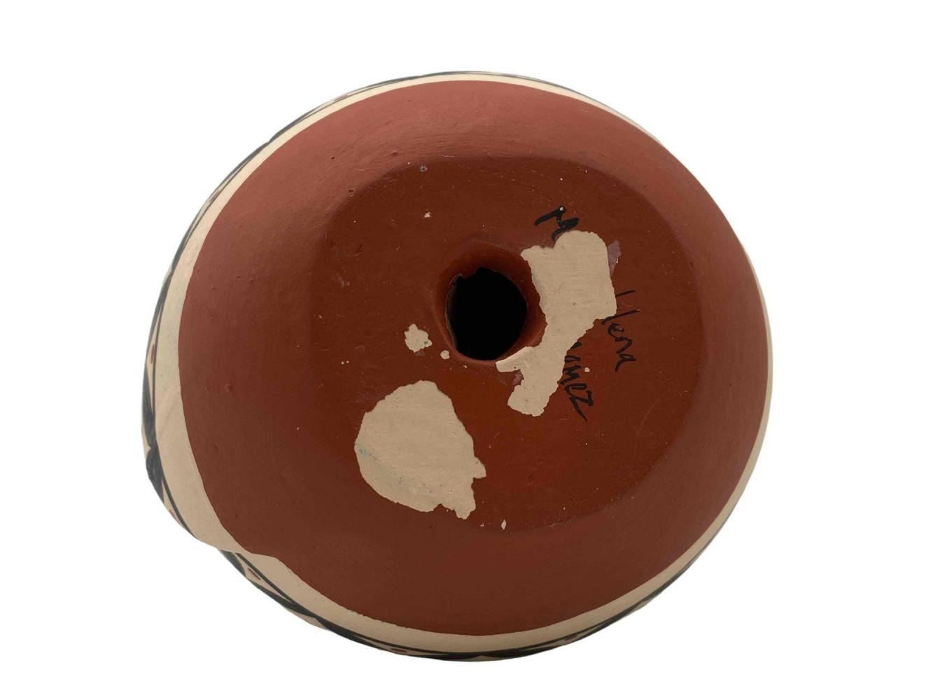 Native American Jemez Pueblo Pottery Storyteller Figure. Marked Jemez. Approximately 8.75H x 4.125W x 4.5D in.