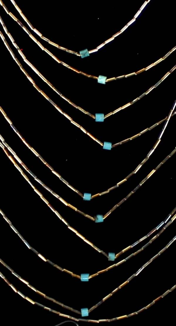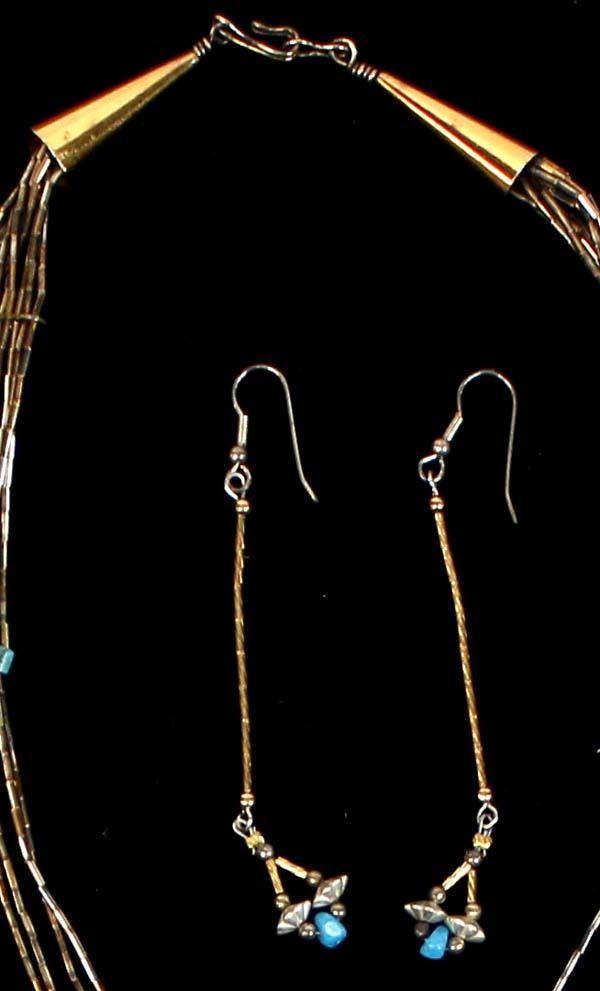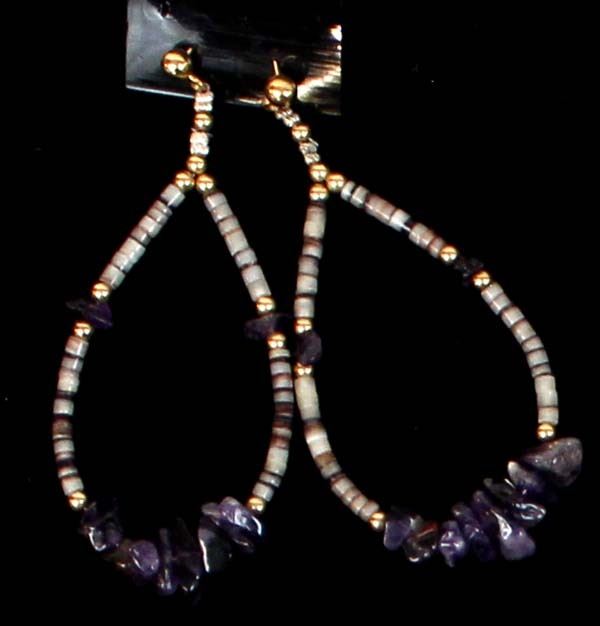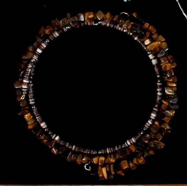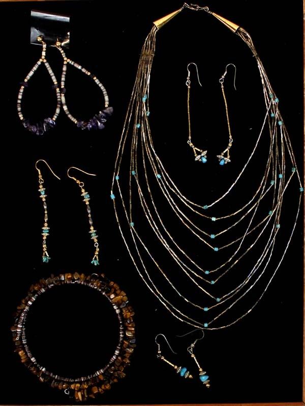 Native American Jewelry, includes 1. Native American Shell Heishi and Amethyst Nugget Earrings by Helen Gregory 2. Three Pairs of Beaded Choctaw-Chickasaw Earrings by Linda Perry 3. Shell Heishi Wire Choker 4. Tiger's Eye Nugget Choker 5. Choctaw-Chickasaw Multi-Strand Bead Necklace by Linda Perry, longest measuring 15''L end to end with longest strand measuring 22''L end to end