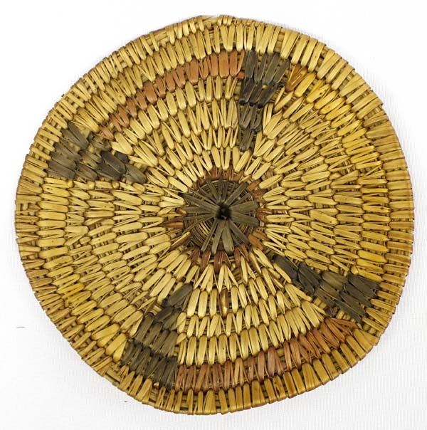 Antique/Vintage Native American Jicarilla Apache Two Foned Flat Basket, measures 7''D