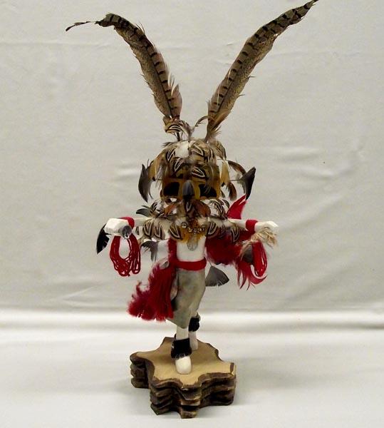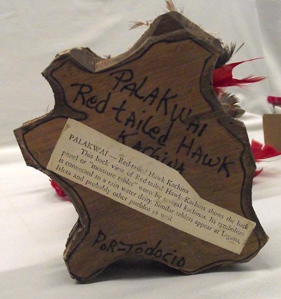 Native American Red Tailed Hawk Kachina Signed. Says on bottom: ''Palakwai Red Tailed Hawk Kachina, Por-Todocio''. Measures approx. 21''H x 9''W with arms outstretched. Some feather damage. Buyers Pay Actual Shipping and Handling Charges(see terms and conditions for more information).
