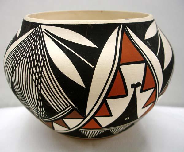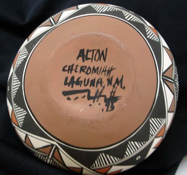 Native American Laguna Polychrome Fine Line Pot by Alton Cheromiah Laguna NM, measures approx. 4.25''H x 6''Diameter. Buyers Pay Actual Shipping and Handling Charges(see terms and conditions for more information)