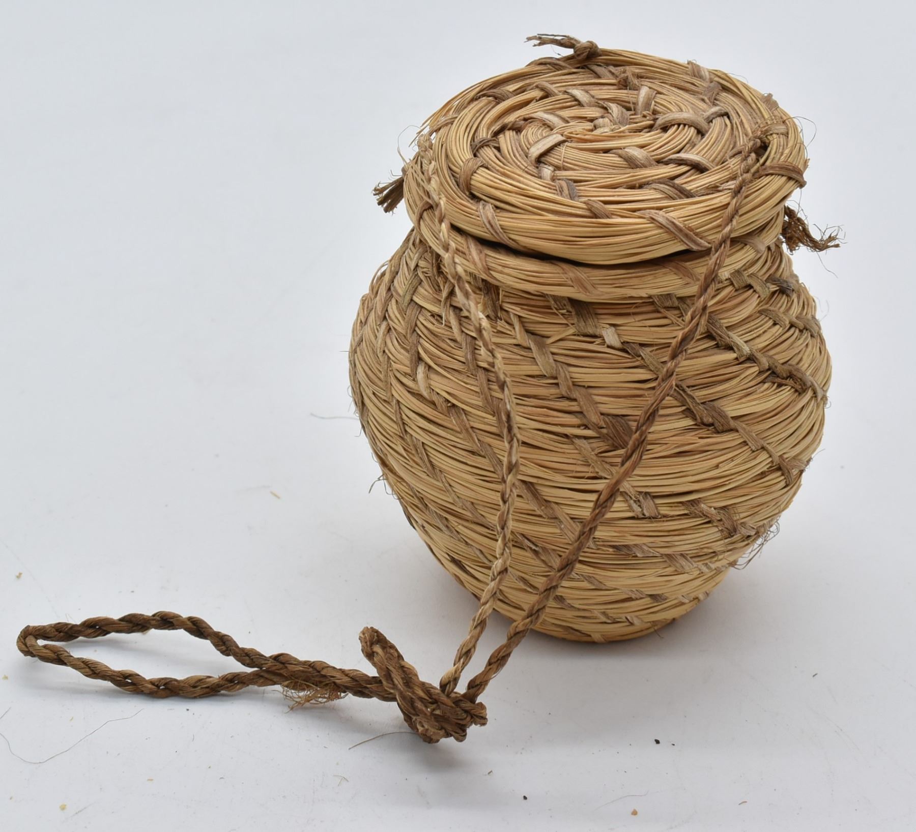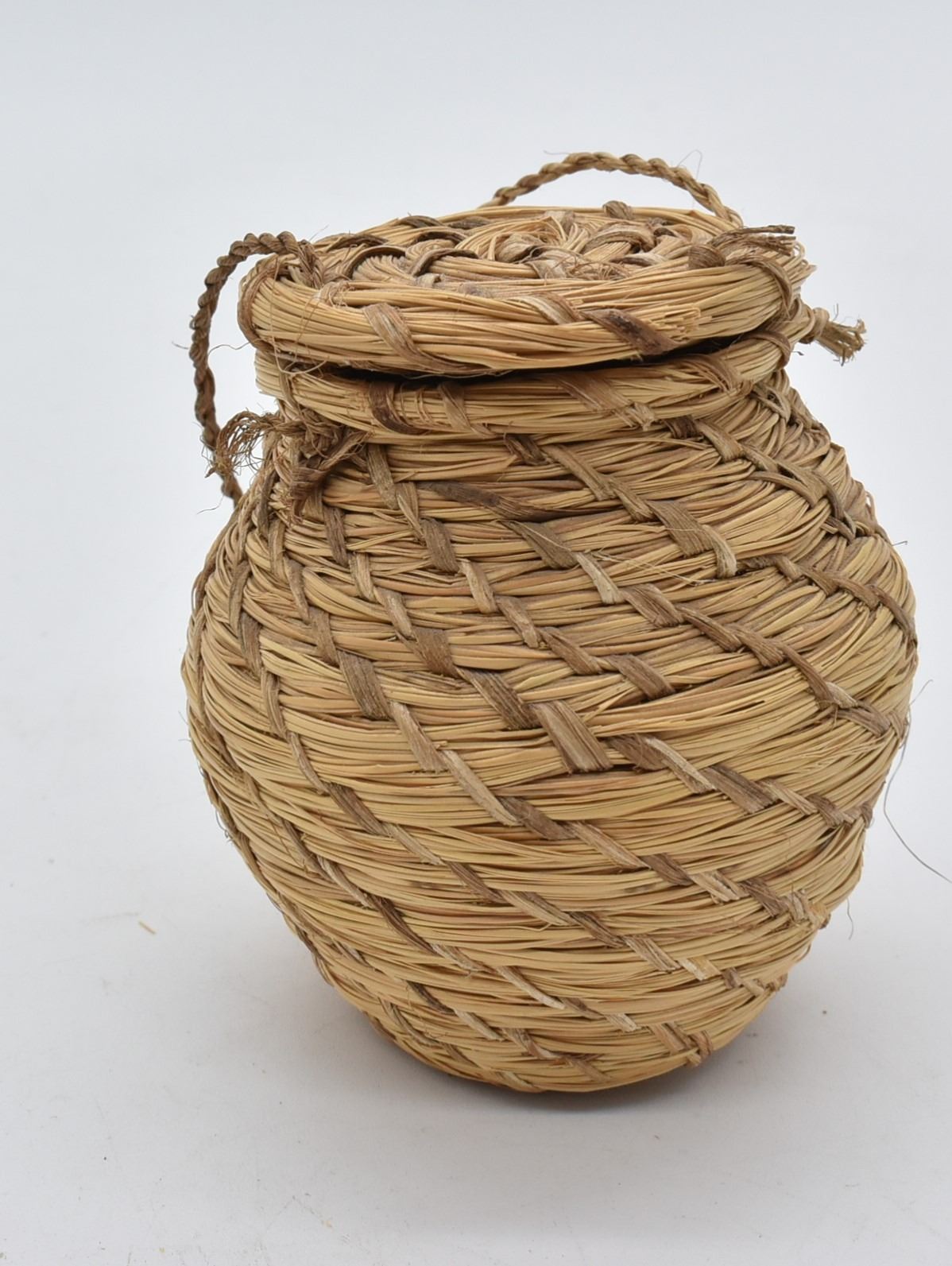 Native American Lidded Seed Basket, measures 3.75'' x 4.5''