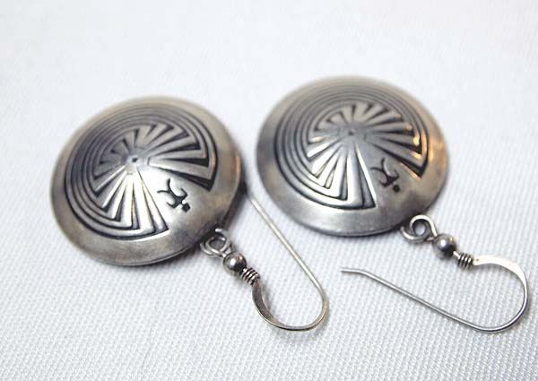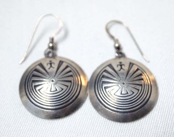 Native American Man in the Maze Sterling Earrings, measure 2''L which includes wire x 1''D