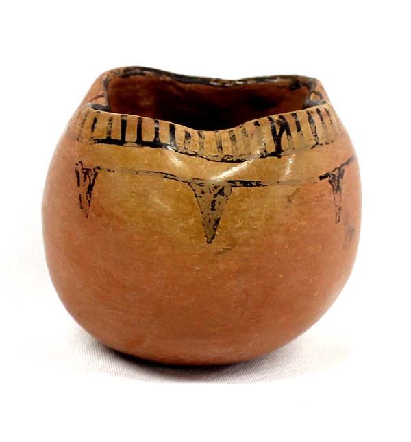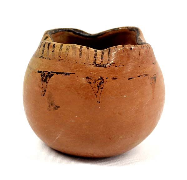 Vintage 1930's-1940's Native American Maricopa Pottery Jar, signed S.J. for S. Johnson, measures 2 3/8''H x 3.25''D, unusual fluted rim