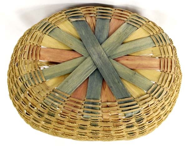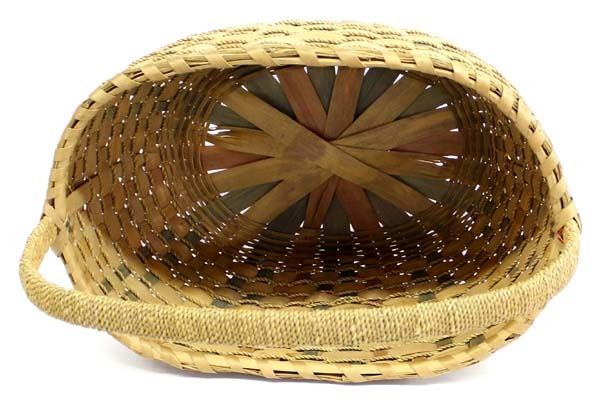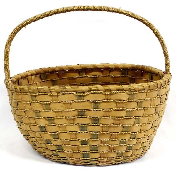 Native American Micmac Single Handled Ash Splint Basket, measures 12.5'' x 13'' x 9''
