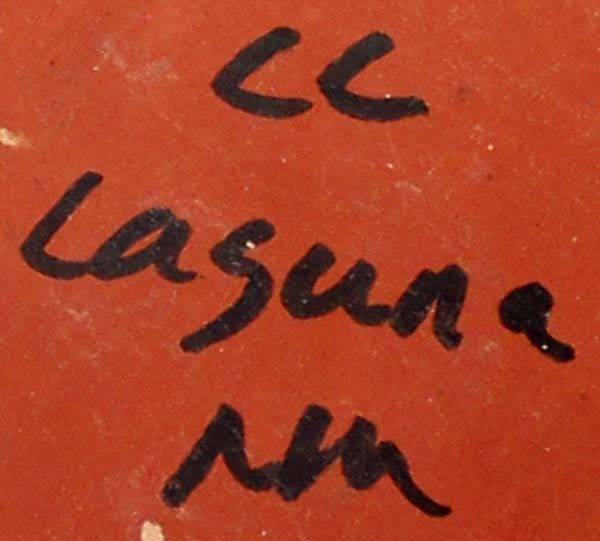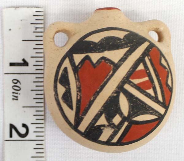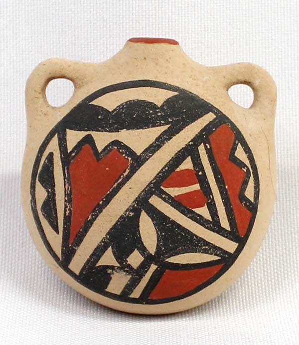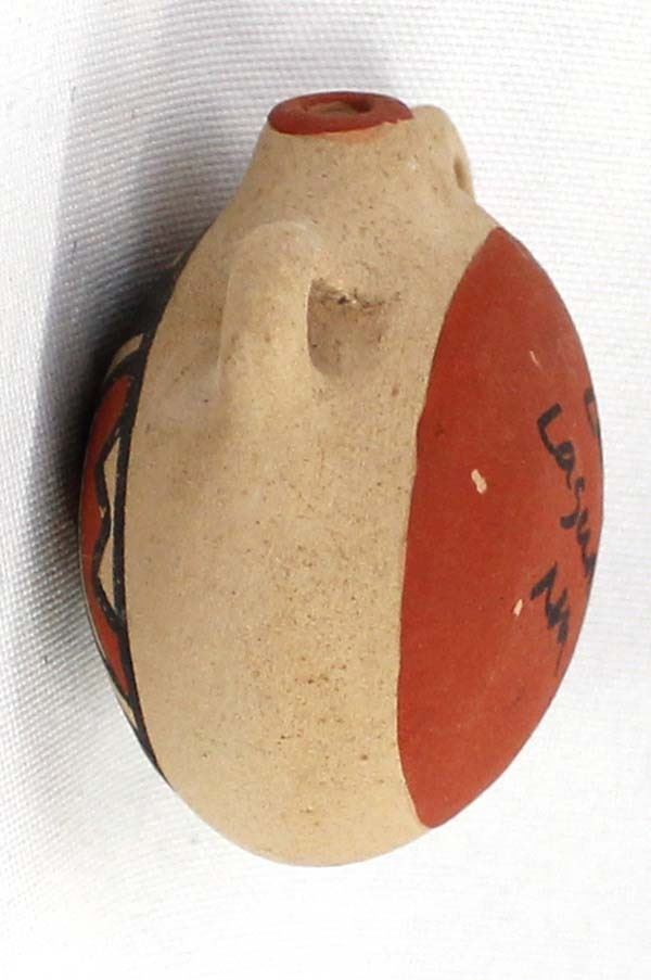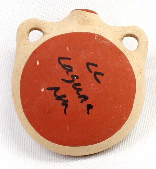 Native American Miniature Laguna Pottery Canteen, measures 2'' x 2''