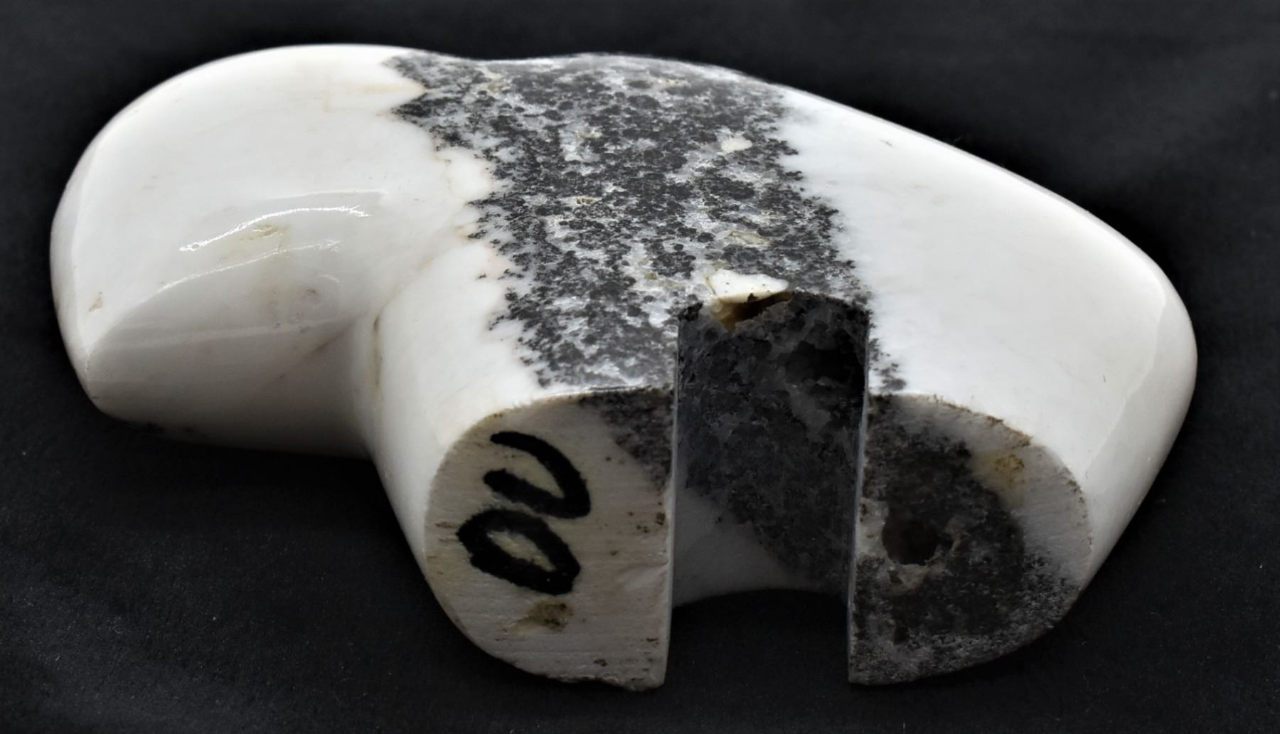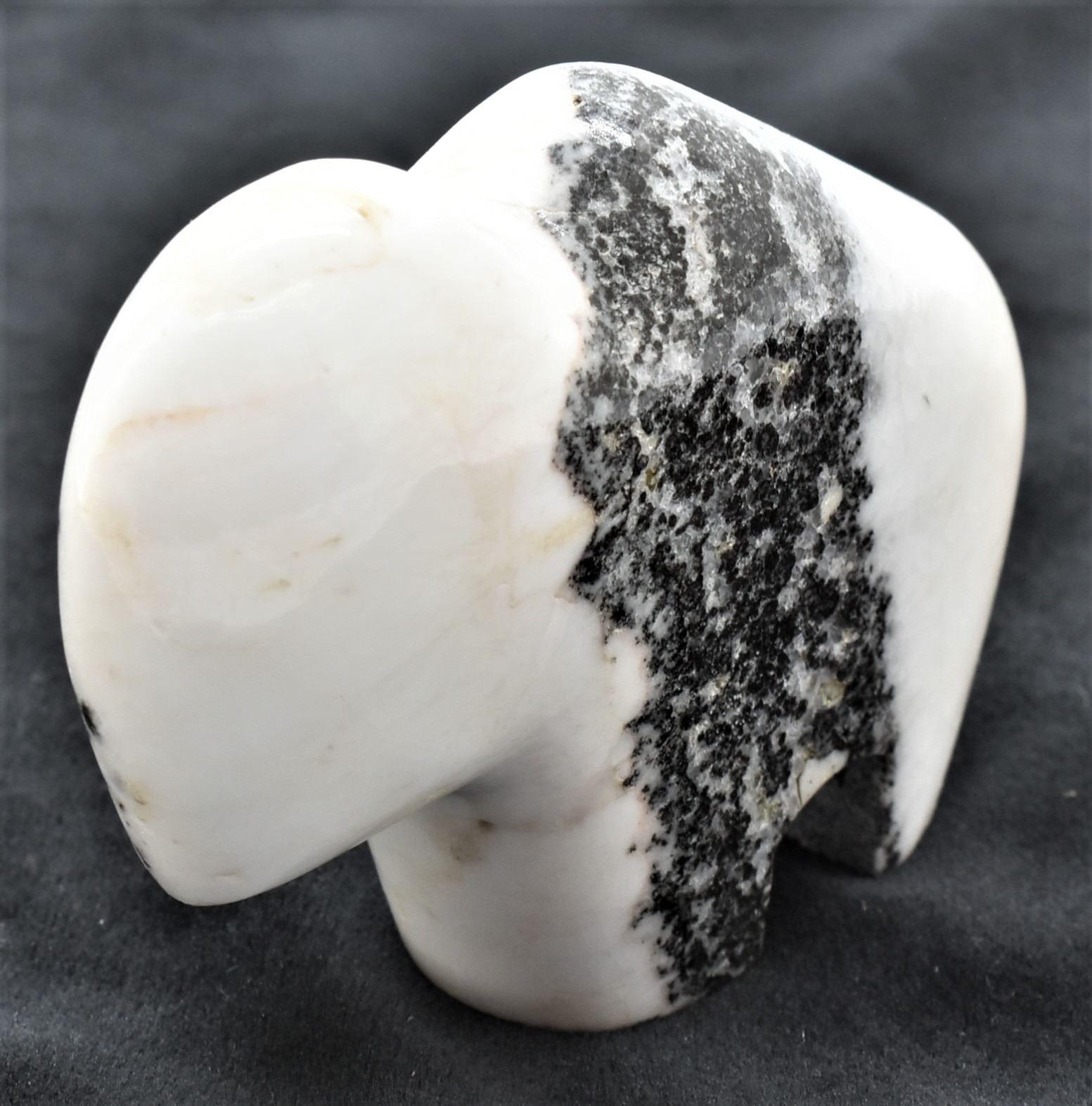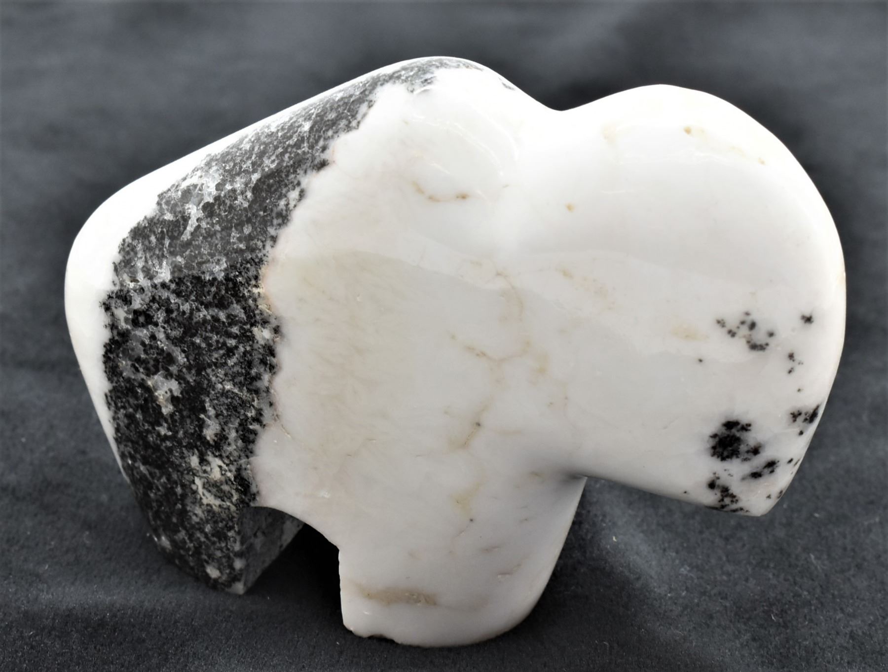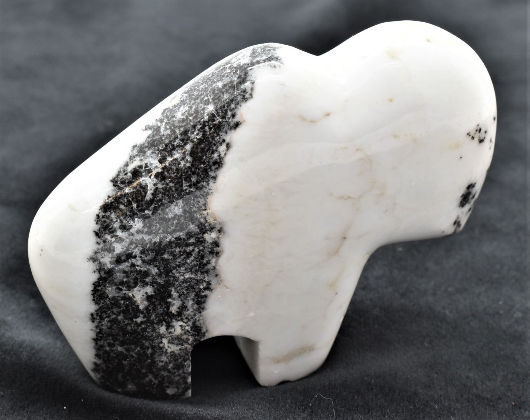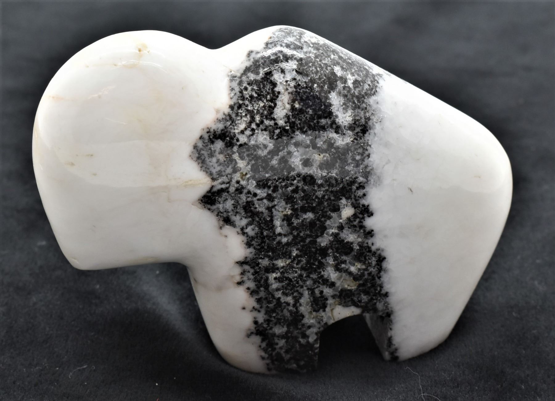 Native American Navajo Alabaster Buffalo Fetish, artist's initials DV written on the bottom, measures 4''L x 2.75''H x 1''W