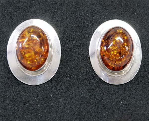 Native American Navajo Amber Earrings-Danetdale. Sterling silver and amber, signed on back, ''W Danetdale. Each measures 1-7/8''x5/8''. Buyers Pay Actual Shipping and Handling Charges(see terms and conditions for more information).
