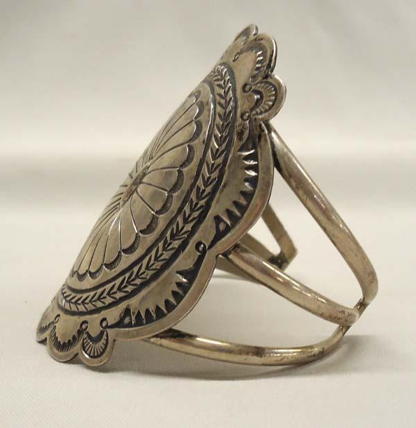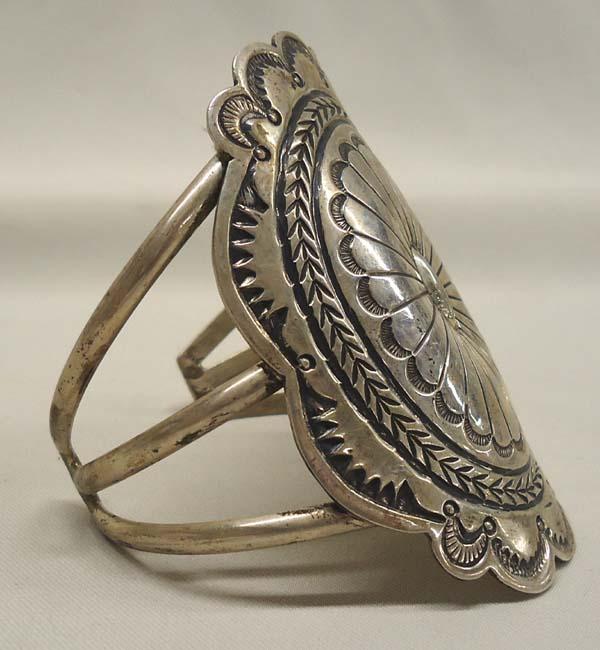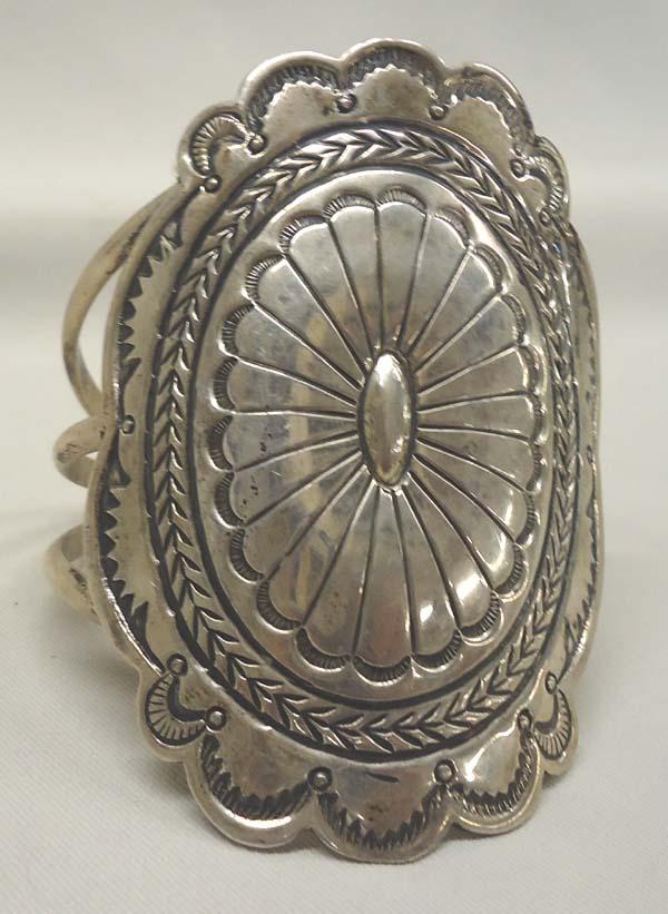 Native American Navajo Silver 3 band Bracelet ''large Concho'', By J. Blackgoat. Measurement in Inches - Inside Length(Including Opening) 6 1/2'' x 3 1/3'' Width. Buyers Pay Actual Shipping and Handling Charges(see terms and conditions for more information).