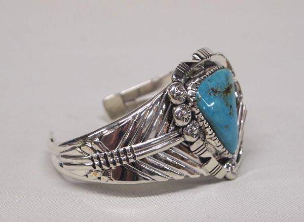 Native American Navajo Silver & Turquoise Bracelet by Charleston Draper, measures 1.5'' wide and 6.25'' inside. Buyers Pay Actual Shipping and Handling Charges(see terms and conditions for more information).