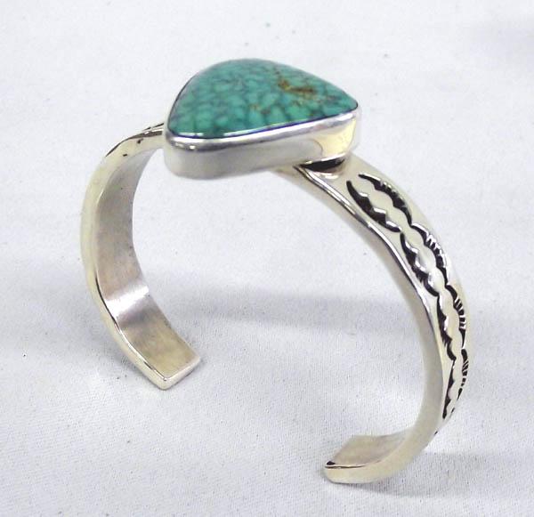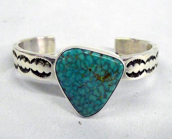 Native American Navajo Silver Turquoise Bracelet by Edison Begay, heavily stamped, natural Pilot Mt. Spiderweb Turquoise, measures approx. 7'' inside and 1''W. Buyers Pay Actual Shipping and Handling Charges(see terms and conditions for more information)