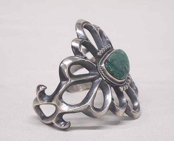 Native American Navajo Silver Turquoise Bracelet by Harrison Begay, measures 2.5'' wide and 6.5'' inside. Buyers Pay Actual Shipping and Handling Charges(see terms and conditions for more information).