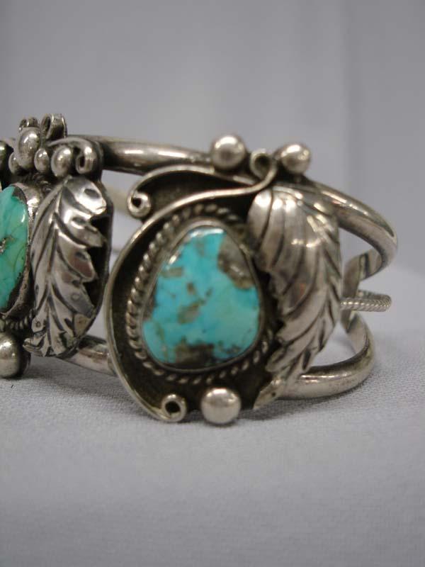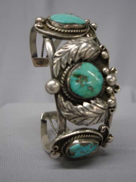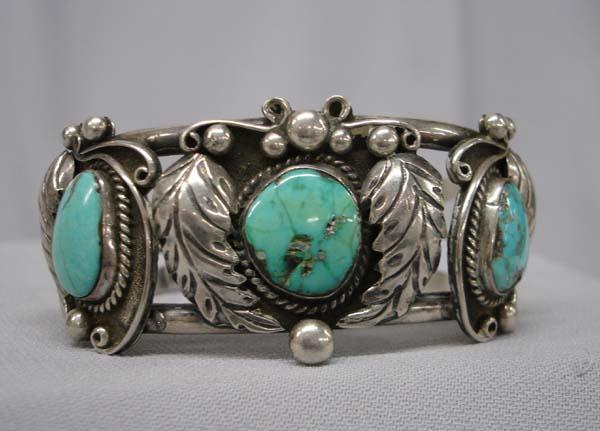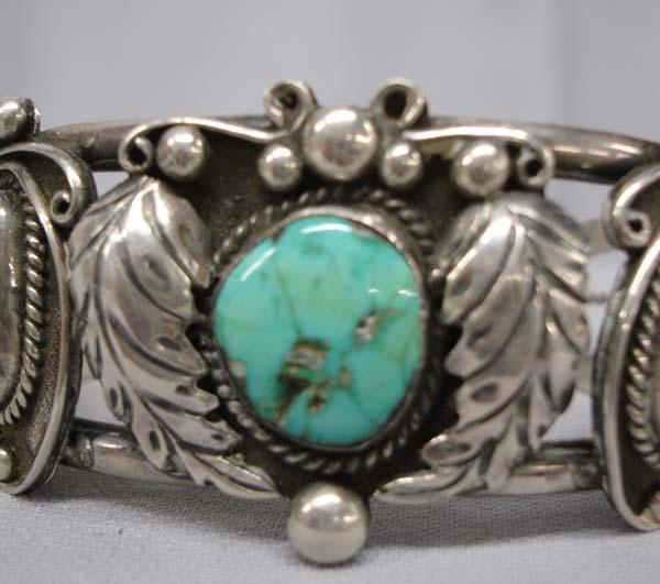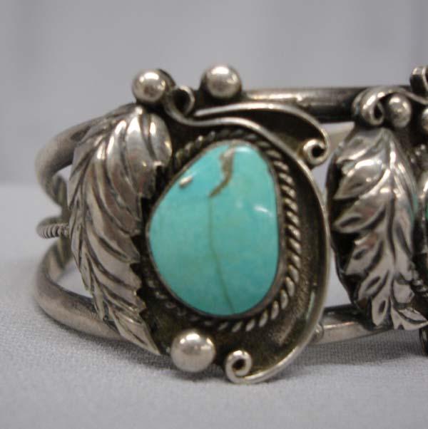 Native American Navajo Silver & Nevada Turquoise Bracelet by -K, Hallmarked, 2 stones are cracked, Inside measures 6.75'' x 1.25''W. Buyers Pay Actual Shipping and Handling Charges(see terms and conditions for more information).