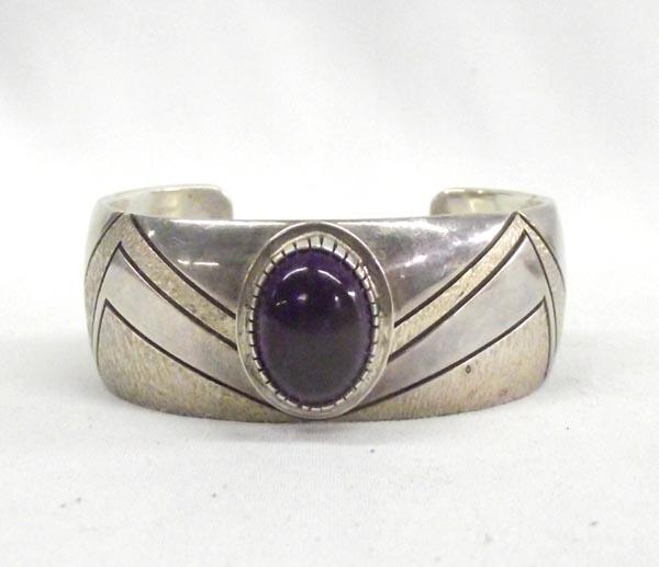 Native American Navajo Sugilite Bracelet by TM Taylor, stamped and florentined, marked sterling, inside measures approx. 6.5'' x 1''W. Buyers Pay Actual Shipping and Handling Charges(see terms and conditions for more information)