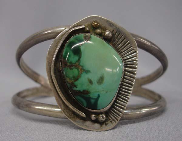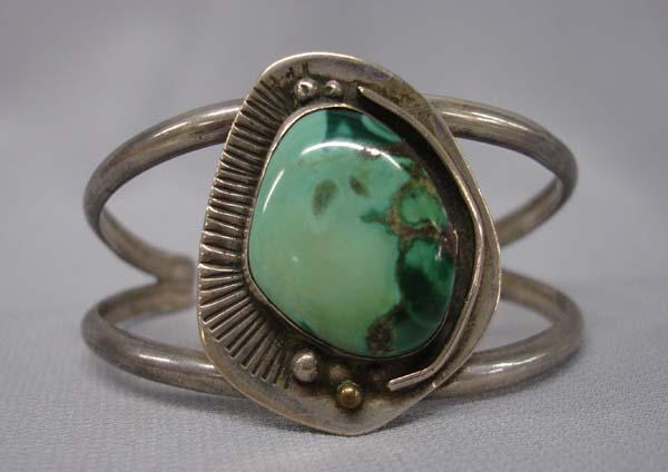 Native American Navajo Silver & Nevada Turquoise Bracelet, measures 1.5''W and 6'' inside. Buyers Pay Actual Shipping and Handling Charges(see terms and conditions for more information).