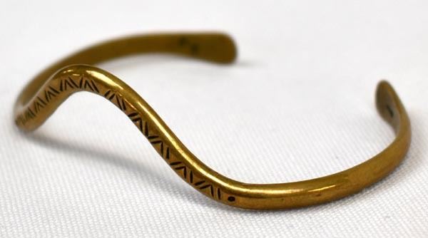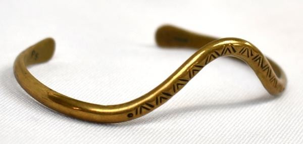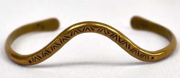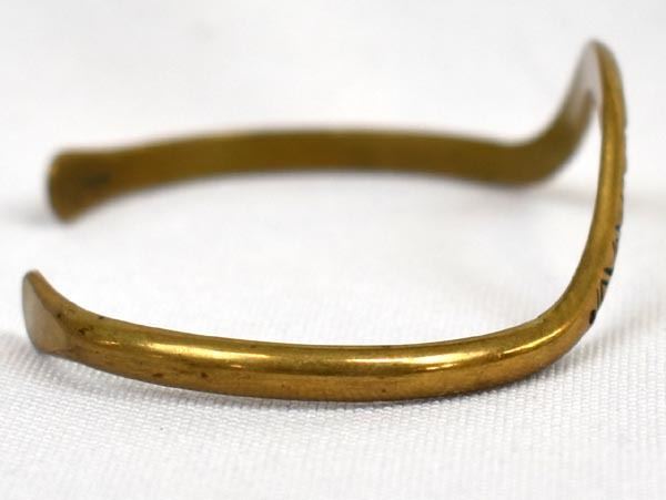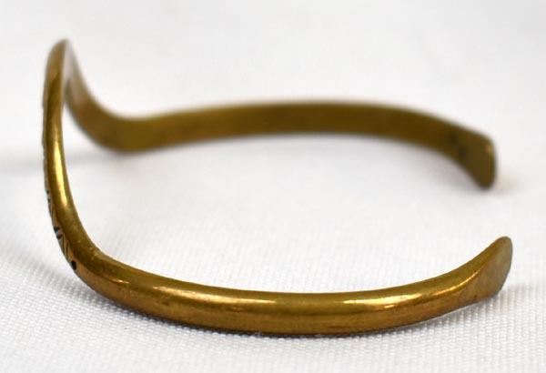 Native American Navajo Brass Bracelet, hallmarked PS, hand stamped, inside measures 7.5'' which includes the gap x 1/8''W
