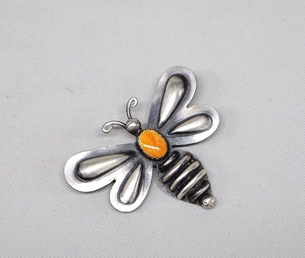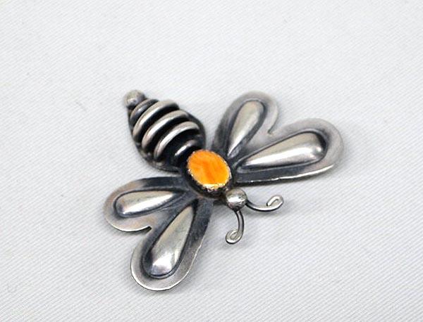 Native American Navajo Silver & Red Spiny Shell Bumblebee Pin by Tim Yazzie, measures 1.5'' x 1.75''. Buyers Pay Actual Shipping and Handling Charges(see terms and conditions for more information).