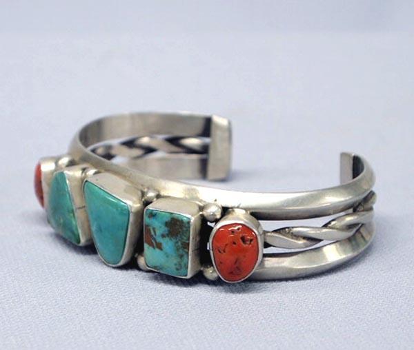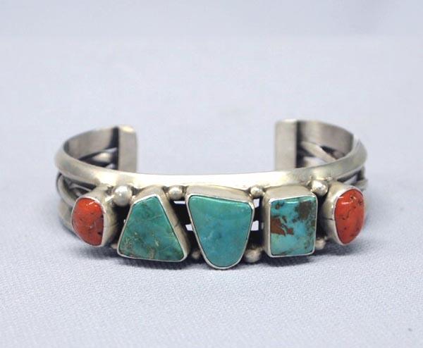 Native American Navajo Sterling Silver Coral Turquoise Bracelet. Carico Lake Turquoise in a 5/8'' wide sterling silver bracelet. Measures 6'' inside including opening. Buyers Pay Actual Shipping and Handling Charges(see terms and conditions for more information).