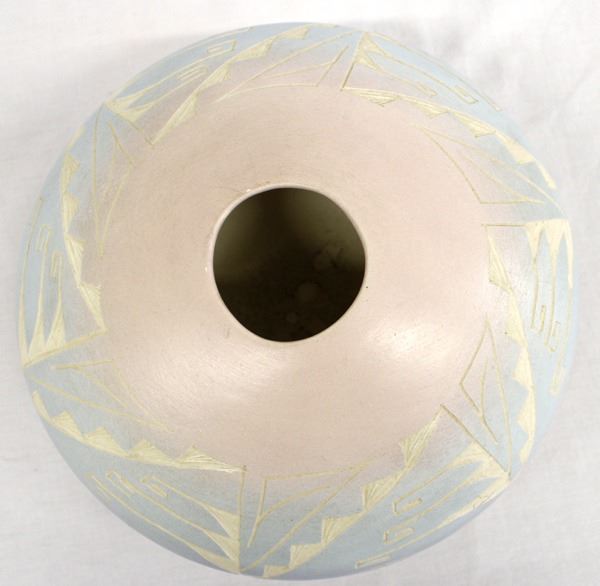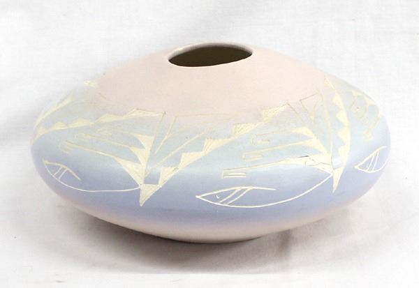 Native American Navajo Carved Ceramic Pillow Vase, measures 5'' x 10'' and is signed on the bottom