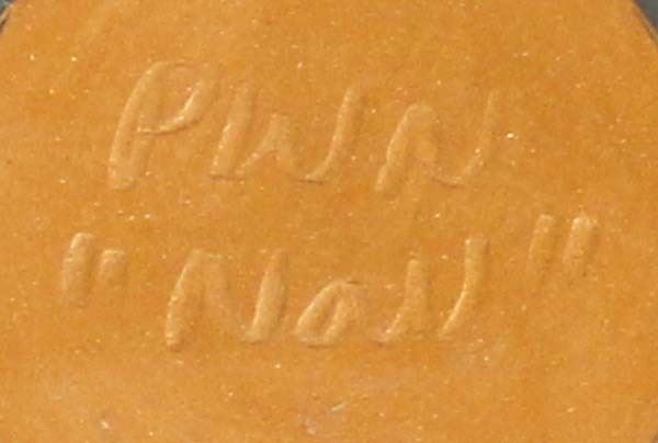 Native American Navajo Carved Pottery Jar, artist's initials PWN on the bottom, beautifully carved stylized feathers and mountains, pulled spout, lovely colors
