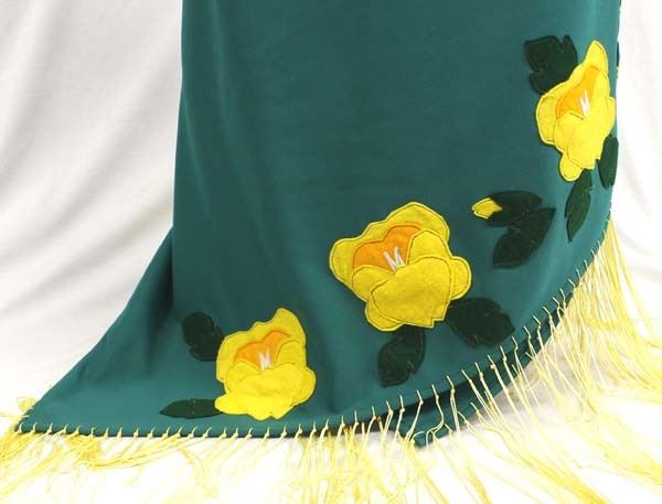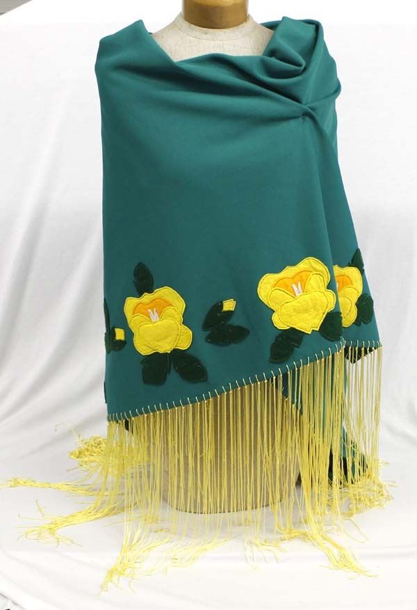 Native American Native American Navajo Dance Shawl, measures 54'' x 60'' which does not include the fringe, beautiful green, yellow, and yellow orange colors, flower motif