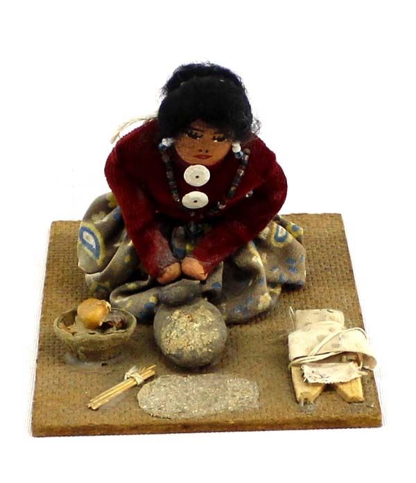 Native American Navajo Doll Grinding Corn, measures 4'' x 5''