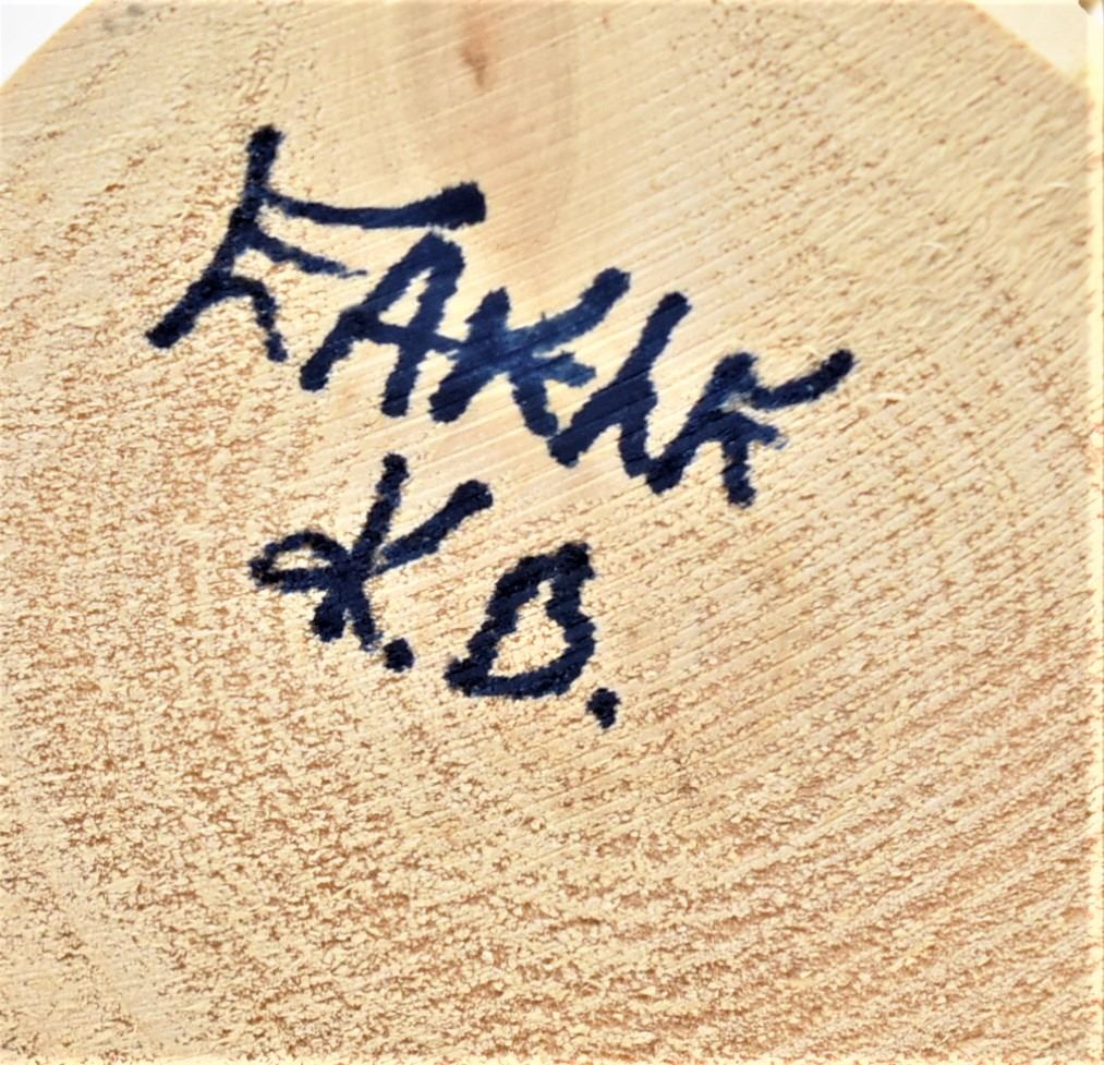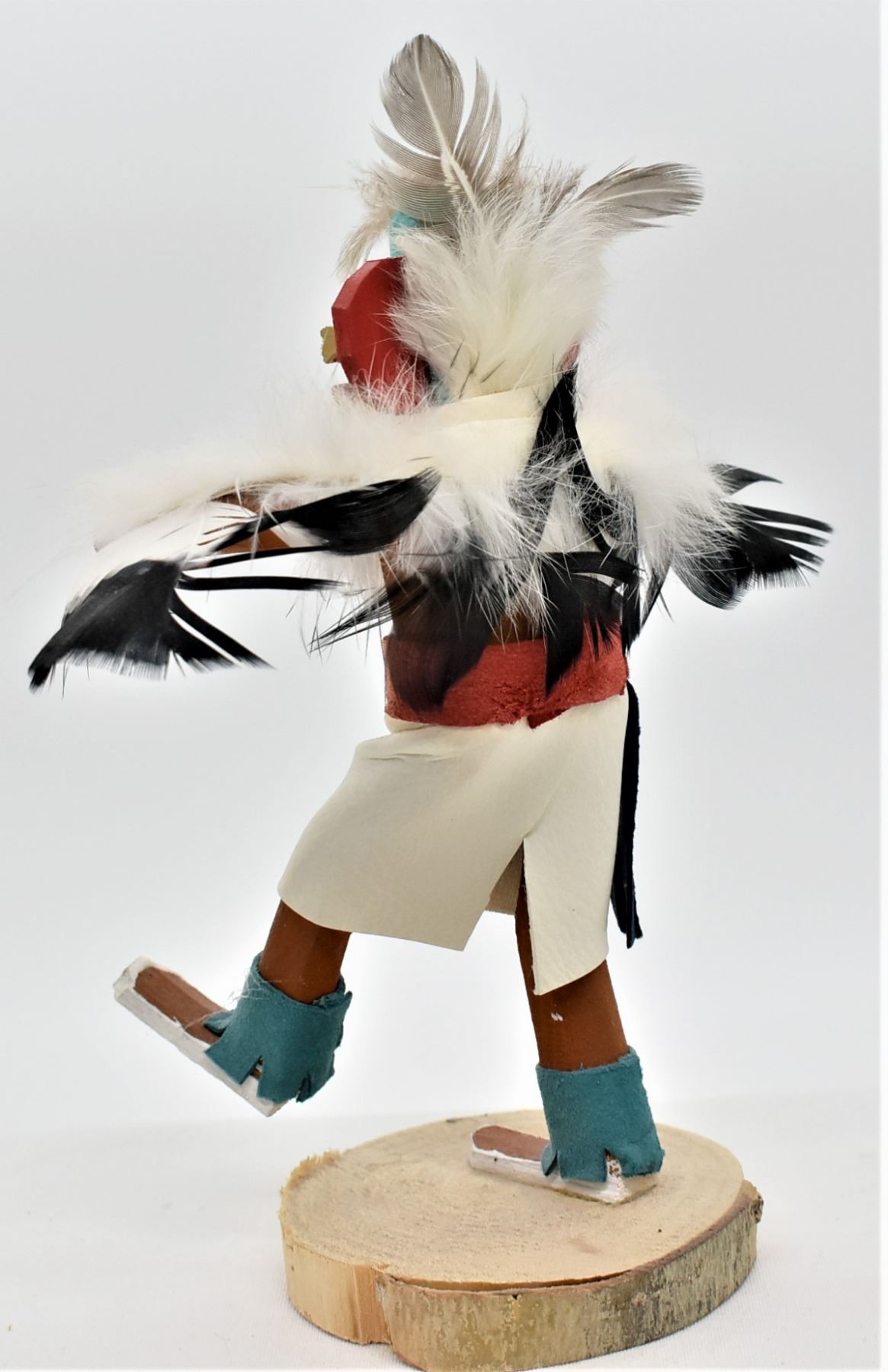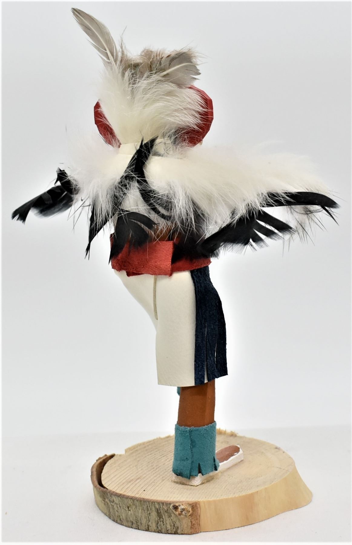 Native American Navajo Eagle Kachina, measures 7'' x 6'' and has artist's intials K.B. on the bottom, embellished with feathers, rabbit fur, painted cloth, and leather