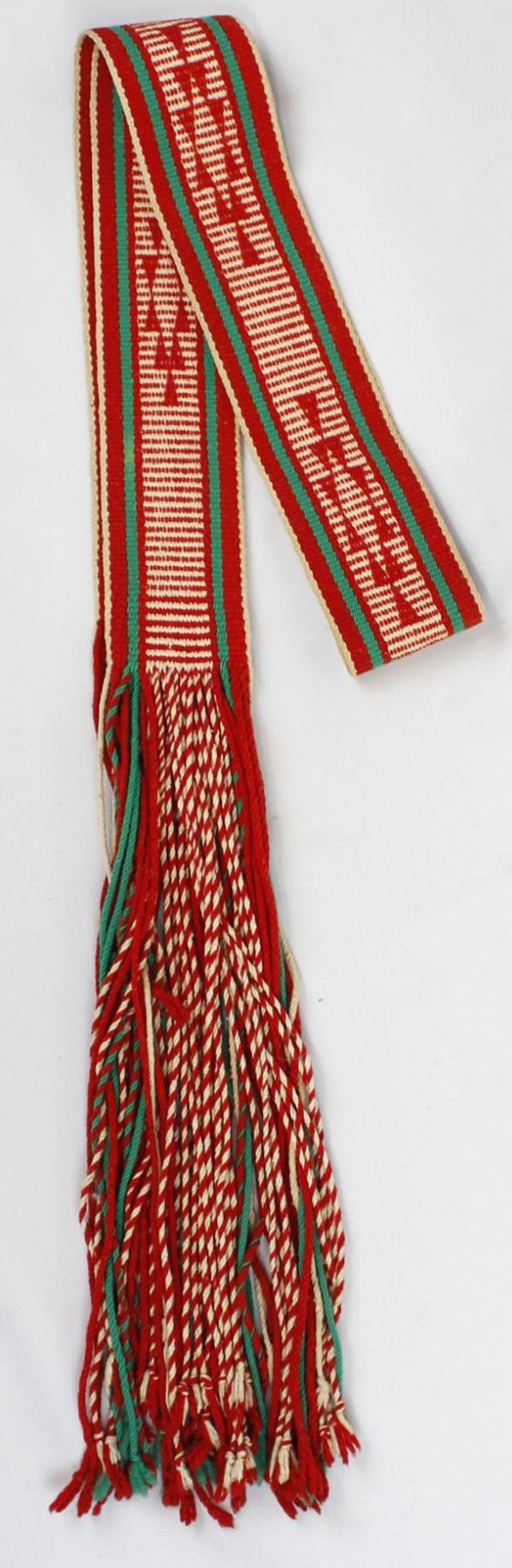 Native American Navajo Fringed Wool Dance Sash, measures 58''L which does include the fringe, fringe measures 17''L, and is 3.5''W