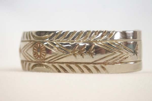 Native American Navajo Hand Stamped Cuff Bracelet by Rick and Nettie Lujan, inside measures 7'' which includes opening x .75''W, hallmarked