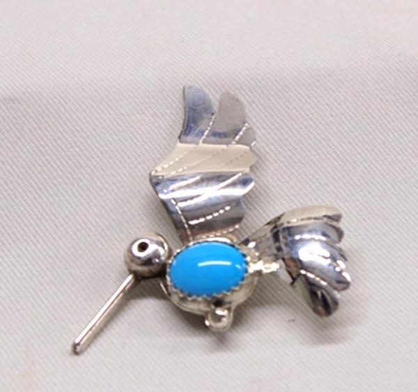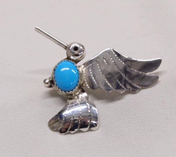 Navajo Silver Turquoise Hummingbird Pin - F Yazzie. Stamped on back ''FY Sterling.'' Height/Width in Inches of Pin is 1.5x1.6. The Stone is 3/8''x3/''. Buyers Pay Actual Shipping and Handling Charges(see terms and conditions for more information)