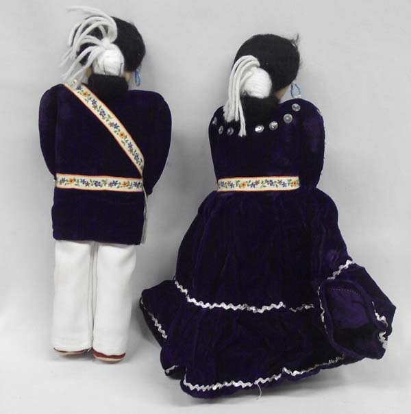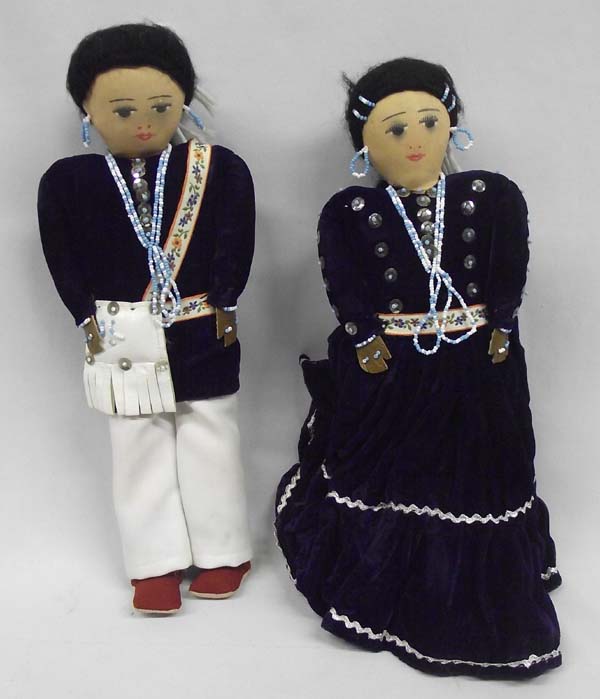 Pair of Native American Navajo Indian Dolls In Traditional Costumes. Dolls measure approx. 13'' tall. Cloth bodies. Buyers Pay Actual Shipping and Handling Charges(see terms and conditions for more information).